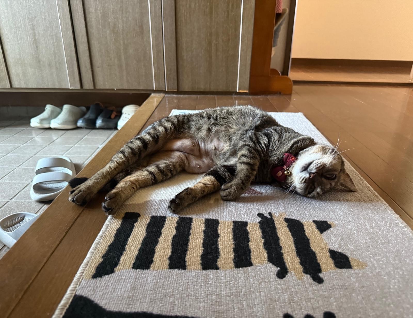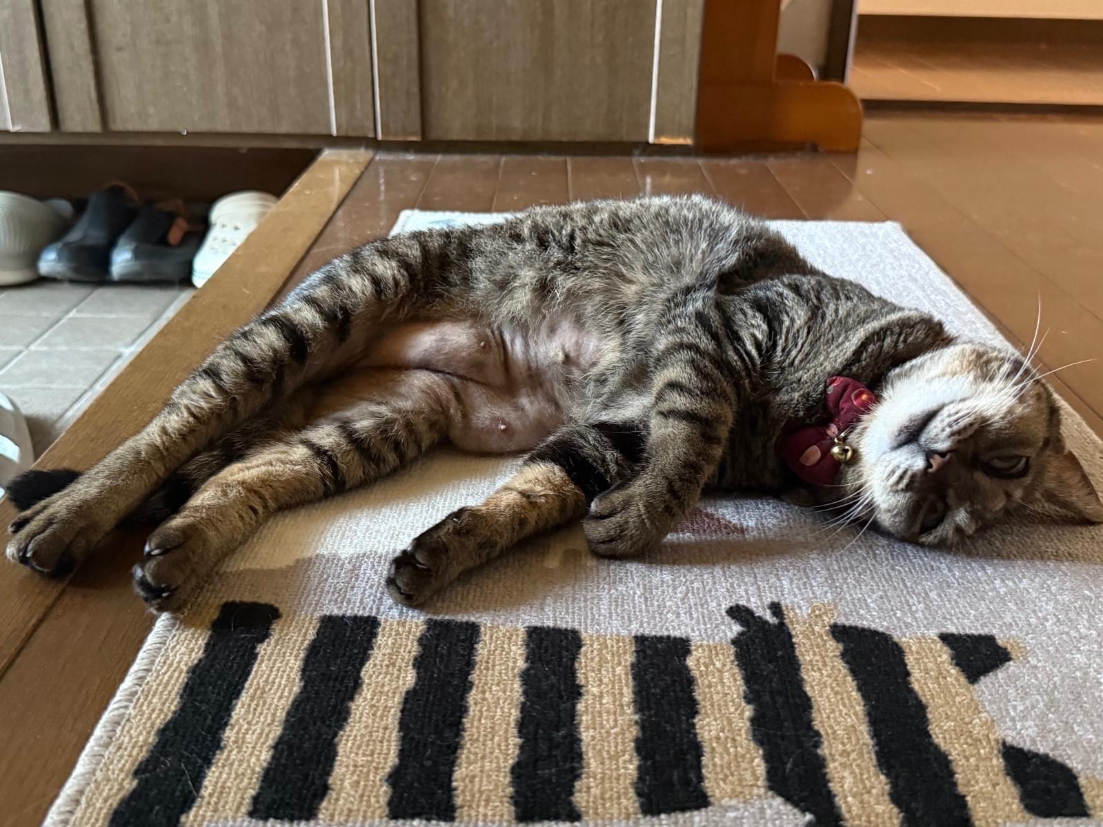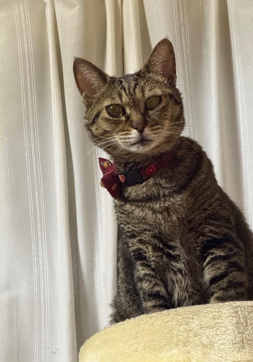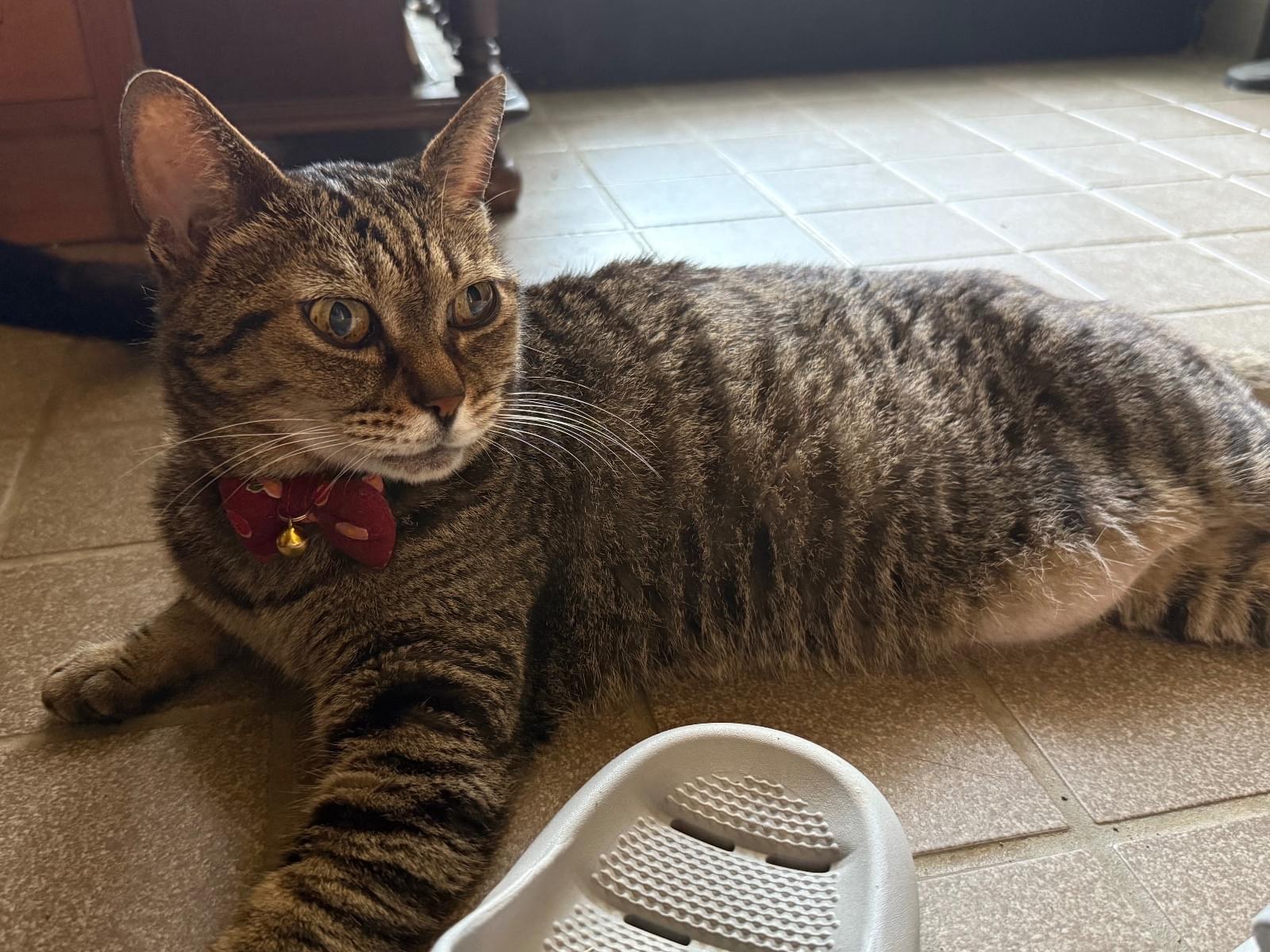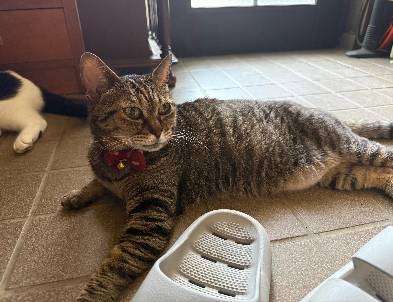 • 赤の和柄リボン付きの首輪を着用(外れている可能性もあり)