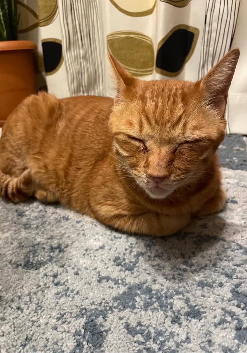 動物病院で猫風邪および結膜炎(もしくはクラミジア感染)の診断を受け、現在保護して治療中です。なお警察署、保健所、東京都動物愛護センター、発見場所近くの病院には連絡・届出済です