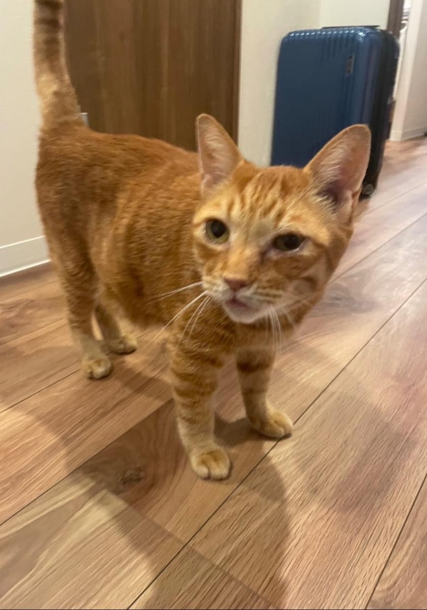 鳴き声は低く掠れてます。かなり人懐っこく甘えん坊な性格で、保護時より喉を鳴らしながら擦り寄ってきました。
