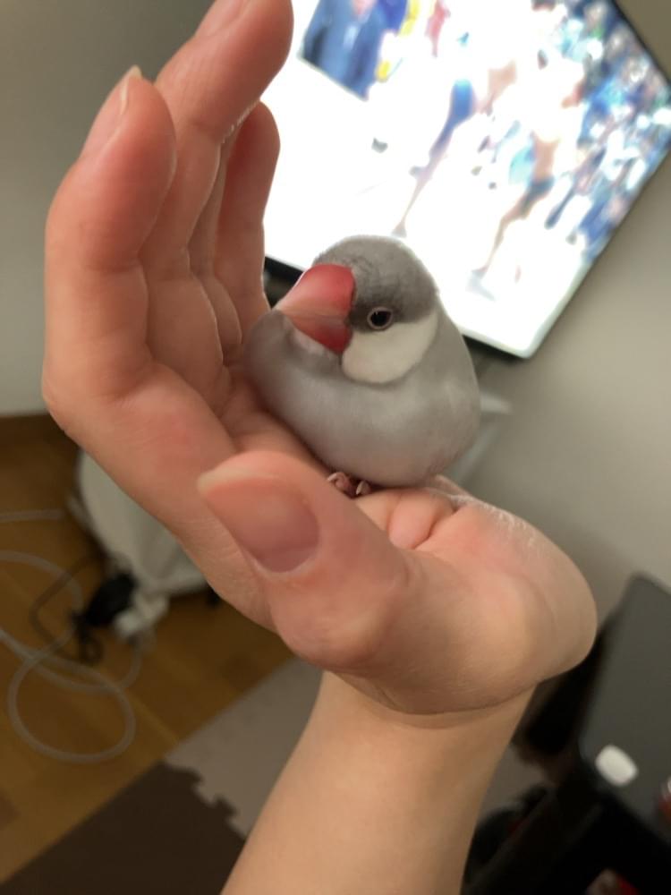 ビビリですが、手乗りでわりと人懐こいと思います。シルバーとしろの2色の文鳥です。