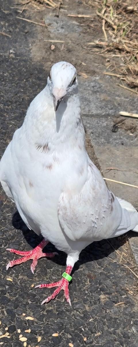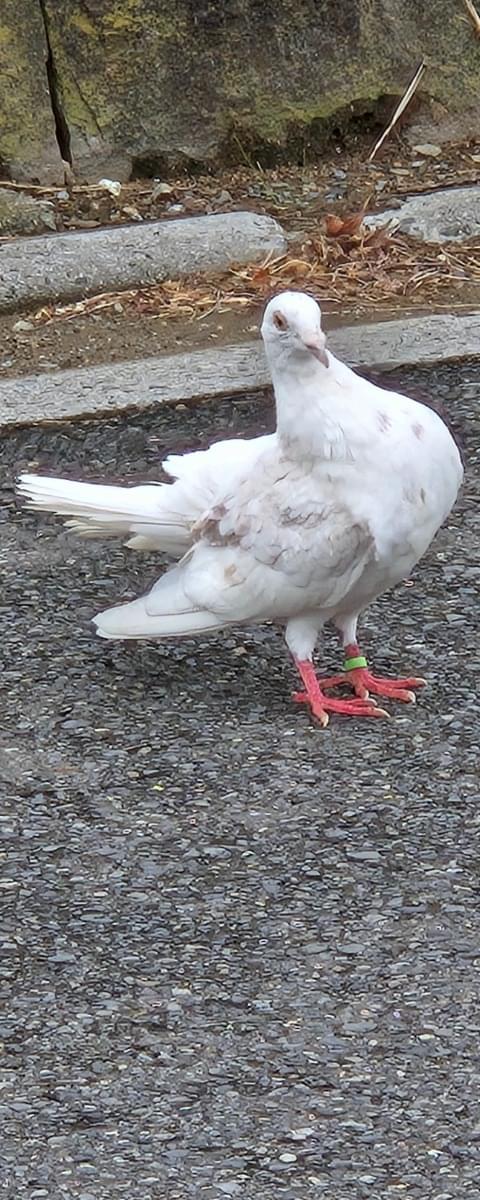 足輪が付いていますが緑色で32としか書いていません 連絡先も有りませんでした飼い主さんの元に帰れるよにと載せました帰巣本能で帰れると良いのですが迷っているようです
