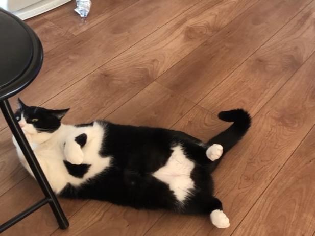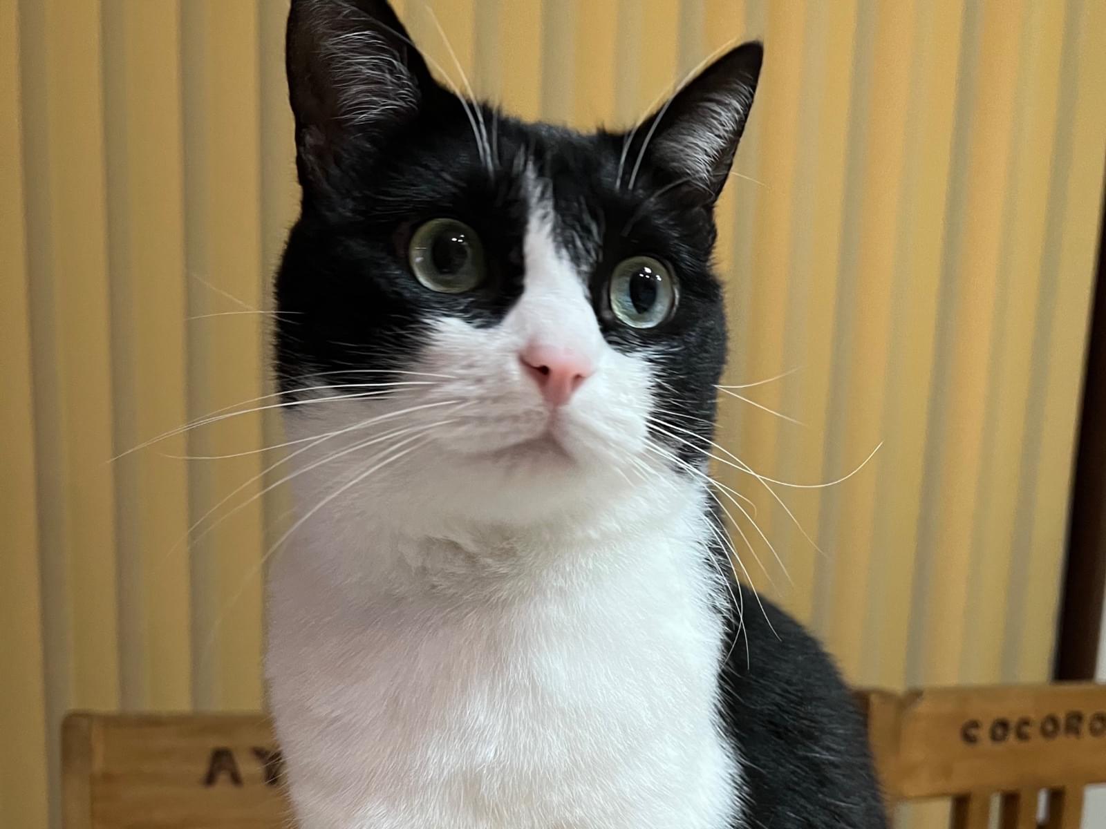 黒白ハチワレ、脚は白足袋の猫かおちゃんを探しています。声は高めでかなり怖がりです。元は野生だったため人が近寄ると逃げる可能性が高いです。