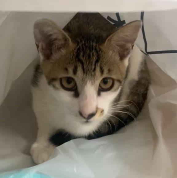 9月25日夕方、千石町の旧ト一屋駐車場付近で行方不明になったキジシロの子猫を探しています。