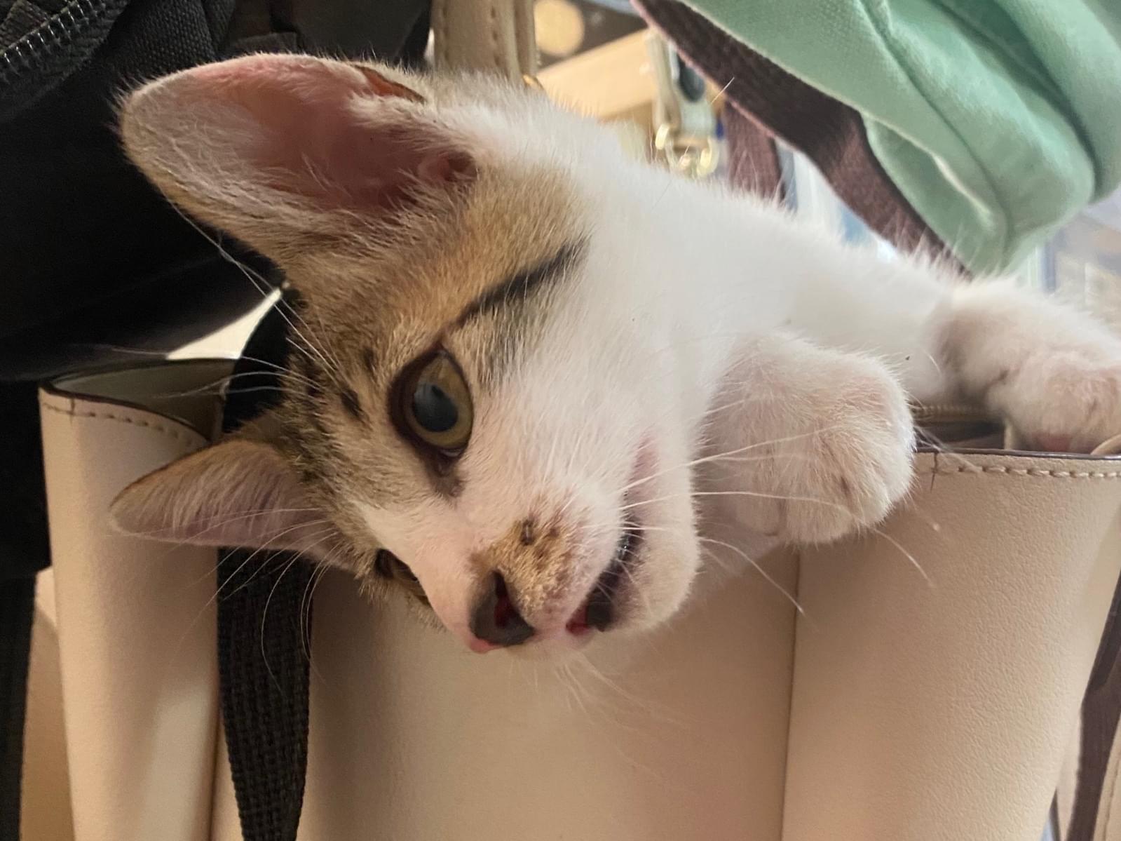 9月25日夕方に千石町2丁目の旧ト一屋の駐車場付近の自宅から行方不明になった当時生後4ヶ月、現在は9ヶ月のキジシロの子猫を探しています。