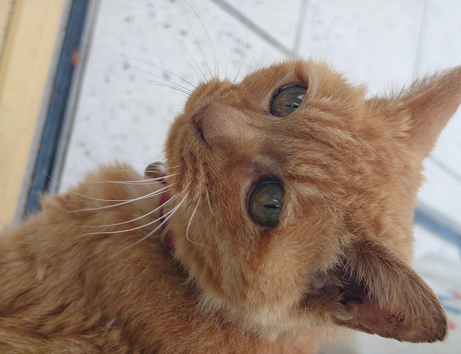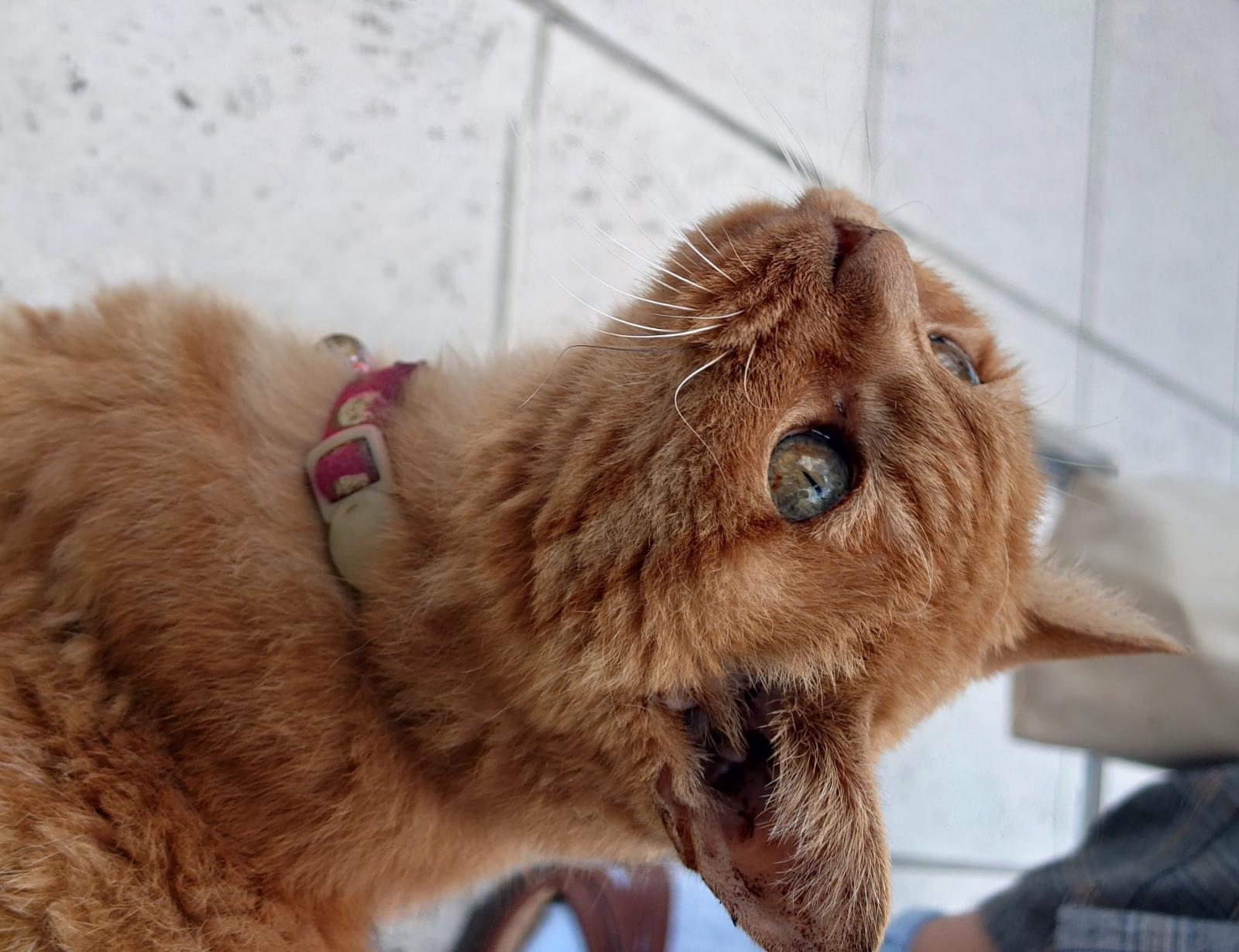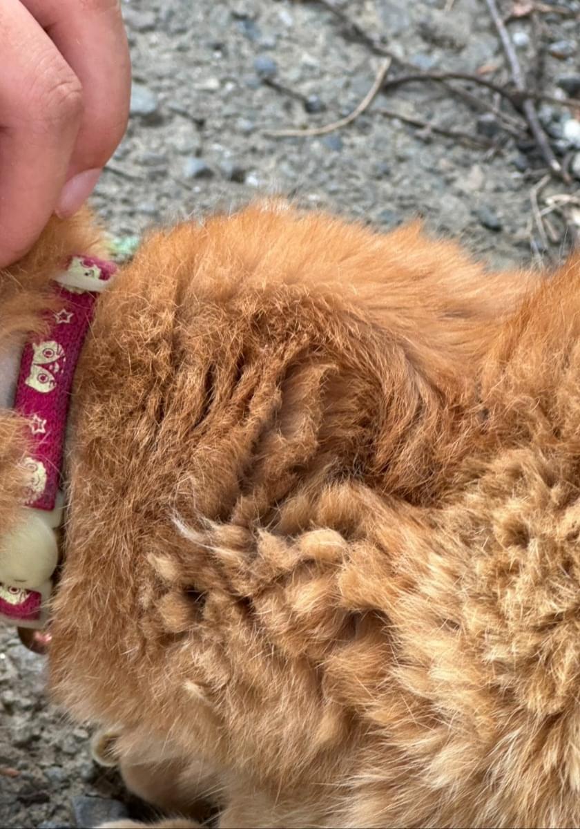爪が伸びきり、毛は荒れて痩せていますが、人懐っこく警戒心は薄め。