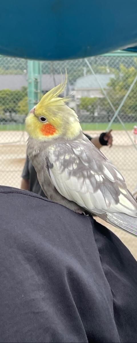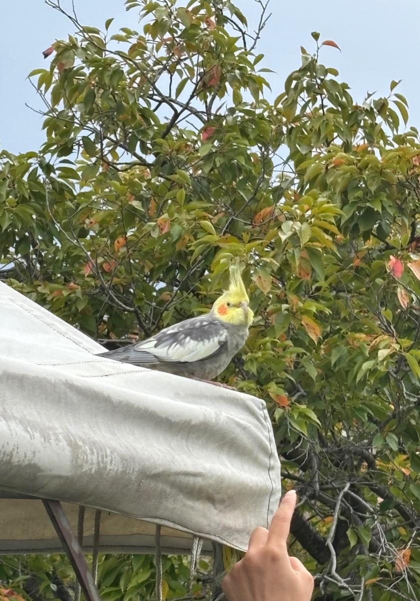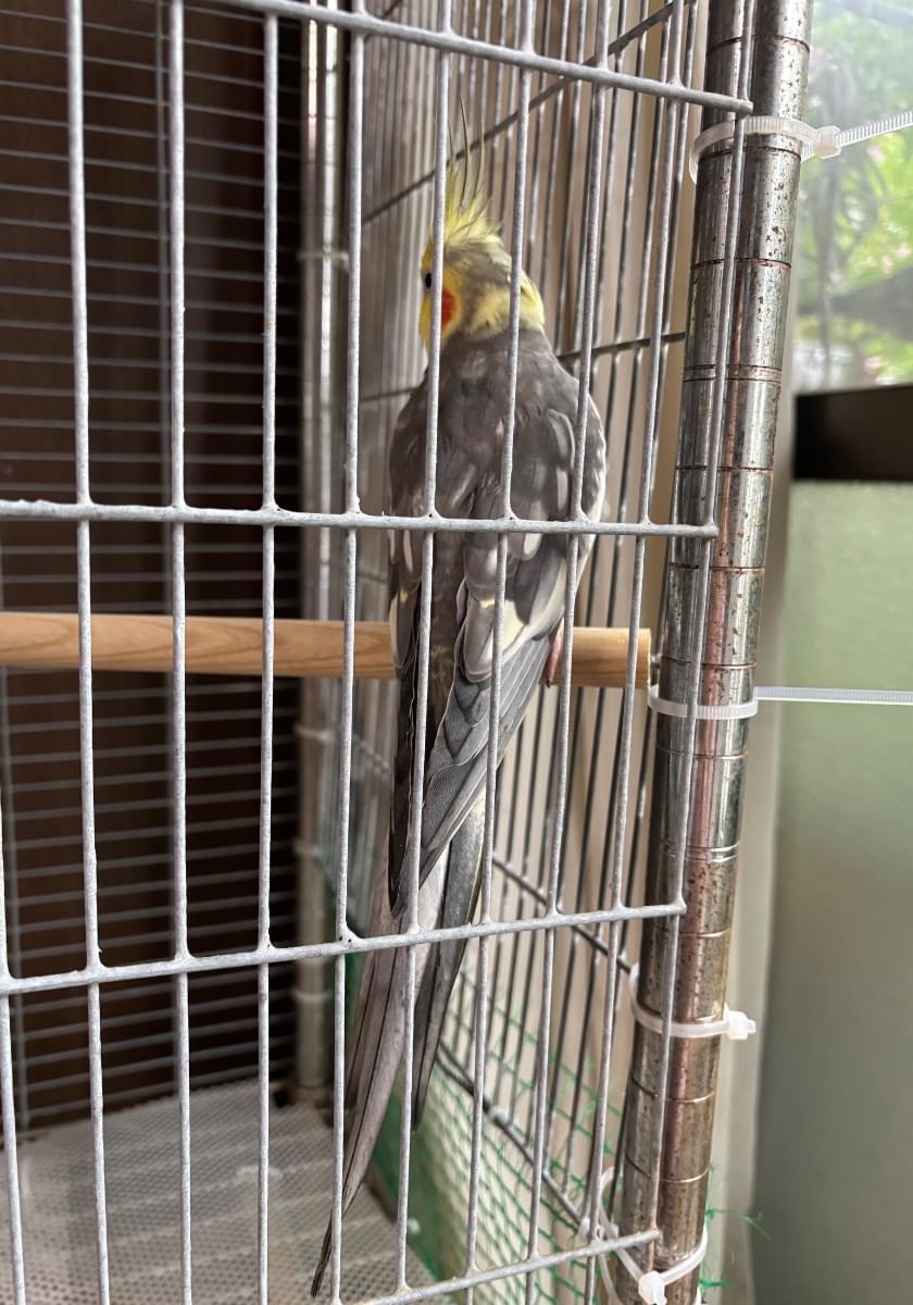 大きな公園でオカメインコを保護しました。