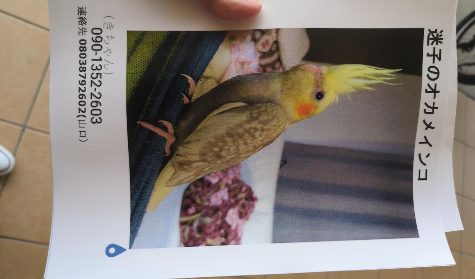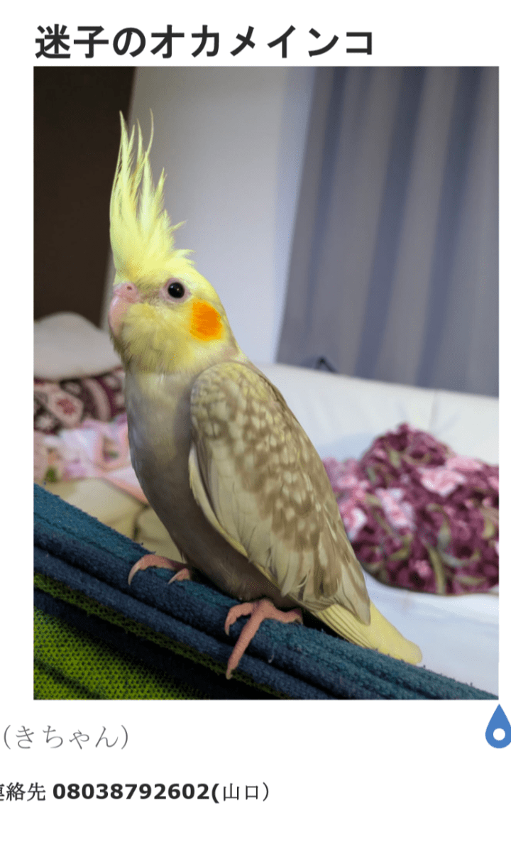 ホーム迷子鳥広島県呼ぶと答える最後見た…呼ぶと答える最後見たのはサイエンスパーク管理編集するポスター掲載終了最終更新日時:2025/09/27 19:15写真情報用件迷子名前きちゃん性別不明年齢3ヶ月場所広島県 東広島市西条町御薗宇発生日時2025年9月27日(土)飼い主山口しずえ説明最後見たのはサイエンスパークです。 そのあと大学の方にいきました。連絡先URL08038792602 09013522603掲示板情報交換のための掲示板です。ユーザーからの情報提供、オーナーからの連絡などにご利用下さいませ。まだコメントはありません。トピックを作成する