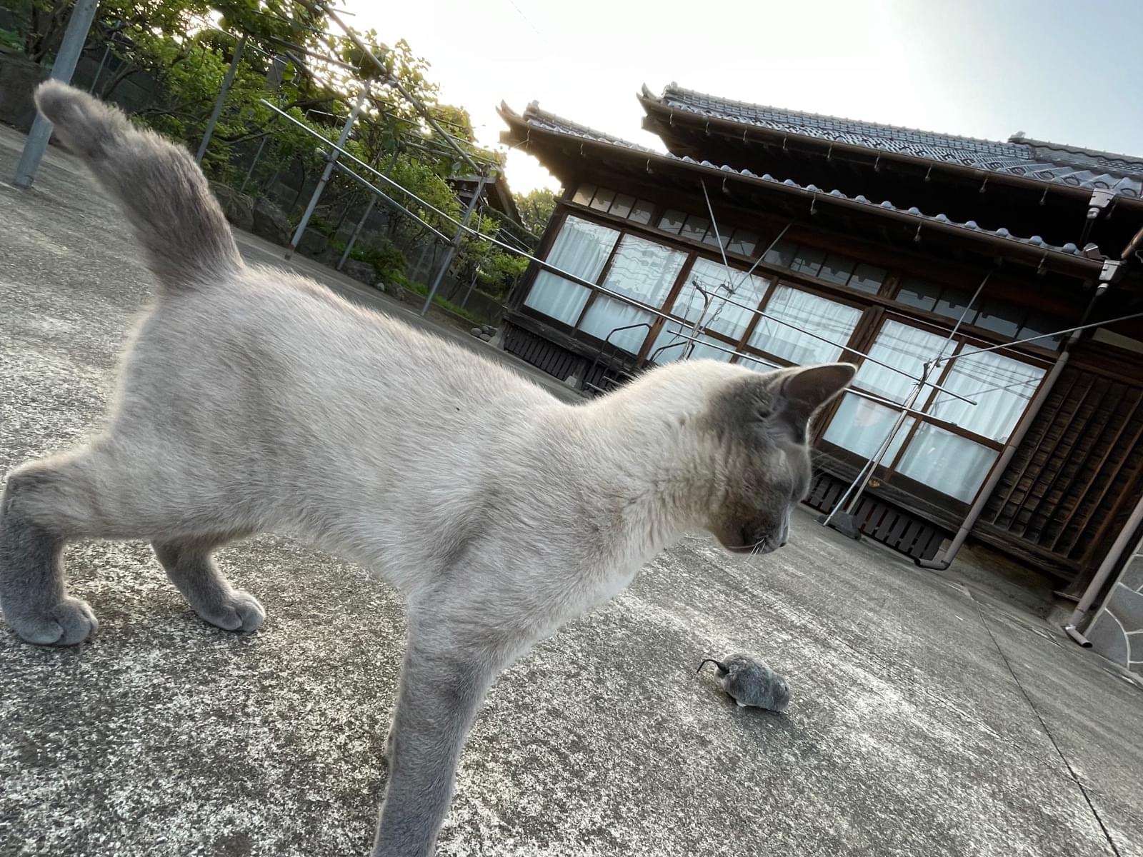 グレーで尻尾が曲がっているシャム猫を探しています