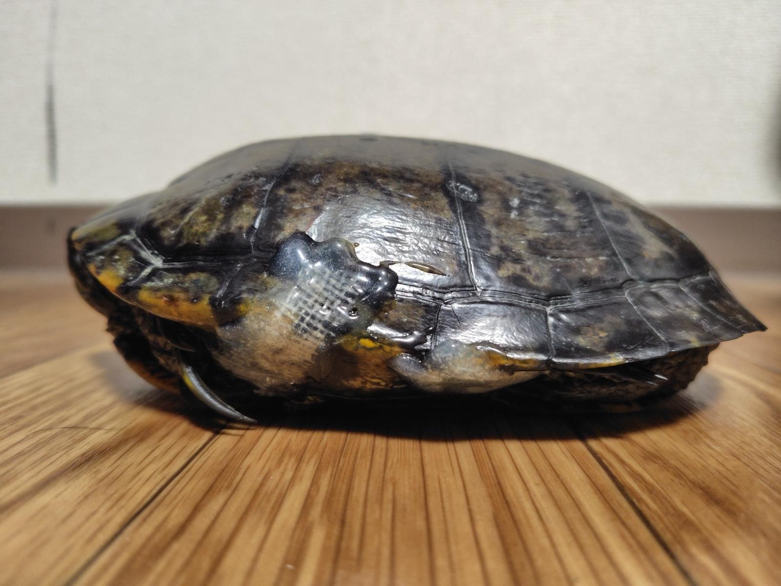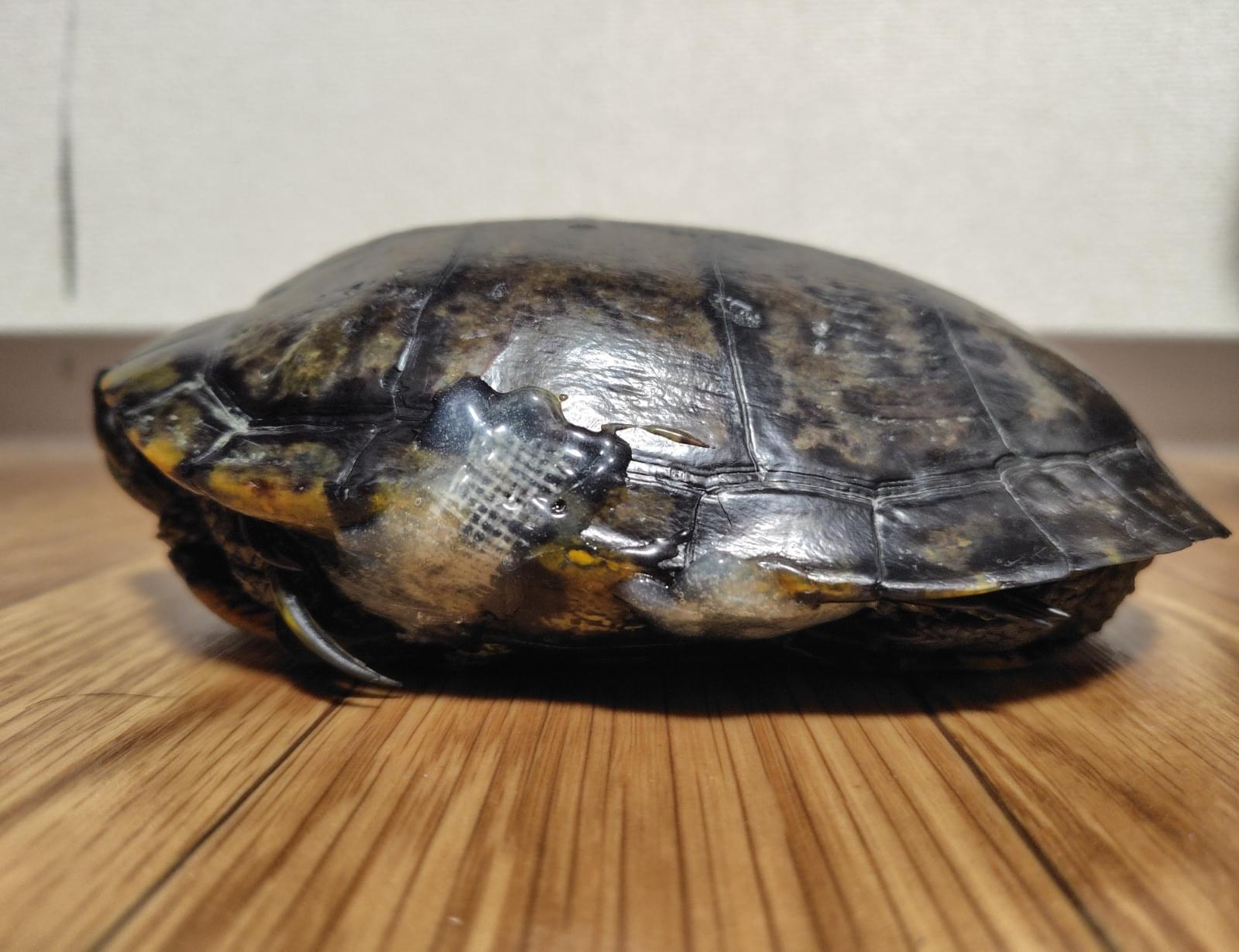 甲羅が傷ついてしまっていたので、病院で手当てしてもらいましたが、とても元気です。