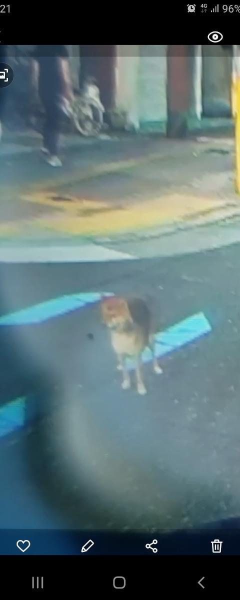 私の車が信号待ちの先頭で止まったので、降りて行って歩道に誘導しようとしましたが、後ずさりするだけで車道から動いてくれませんでした。