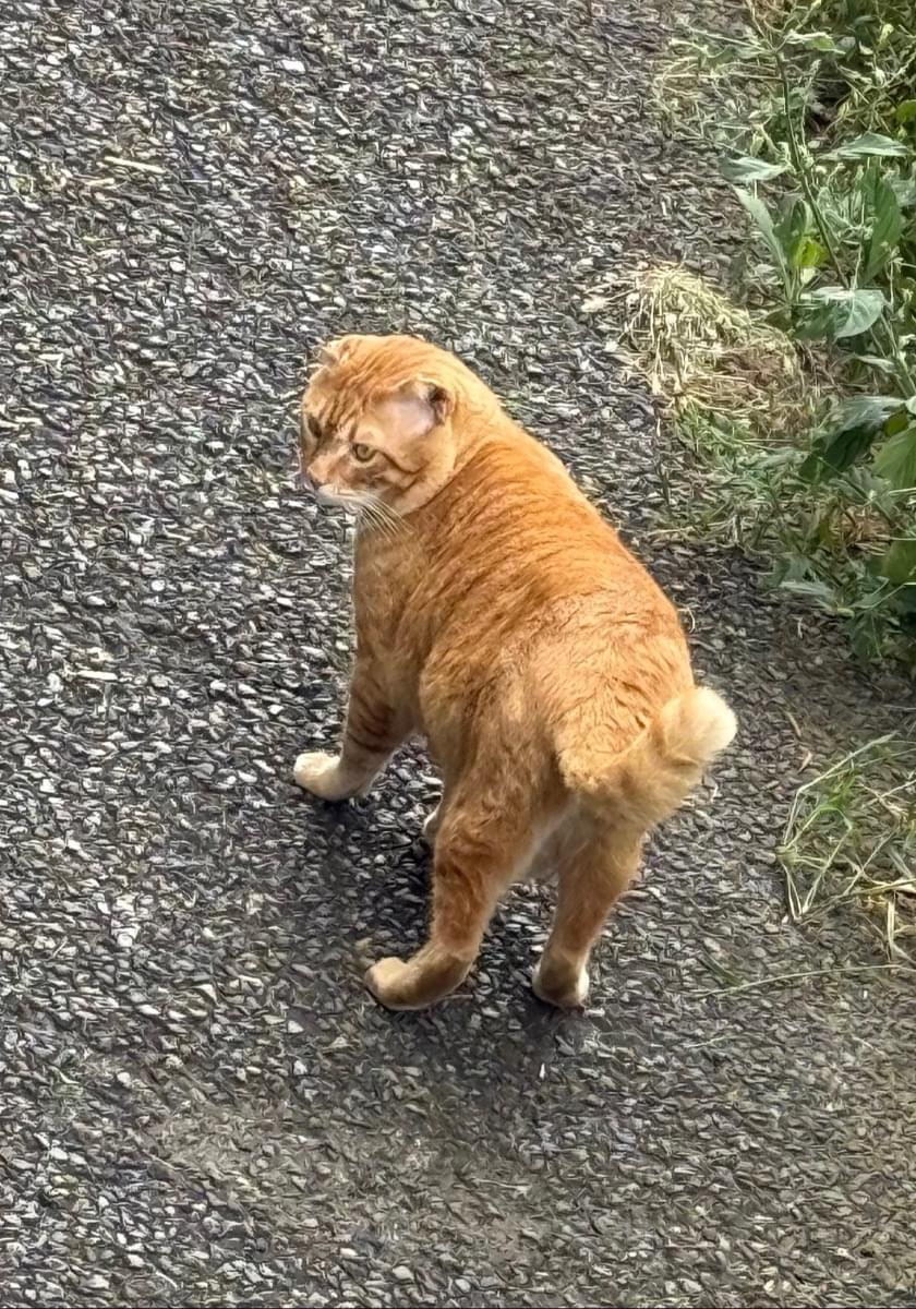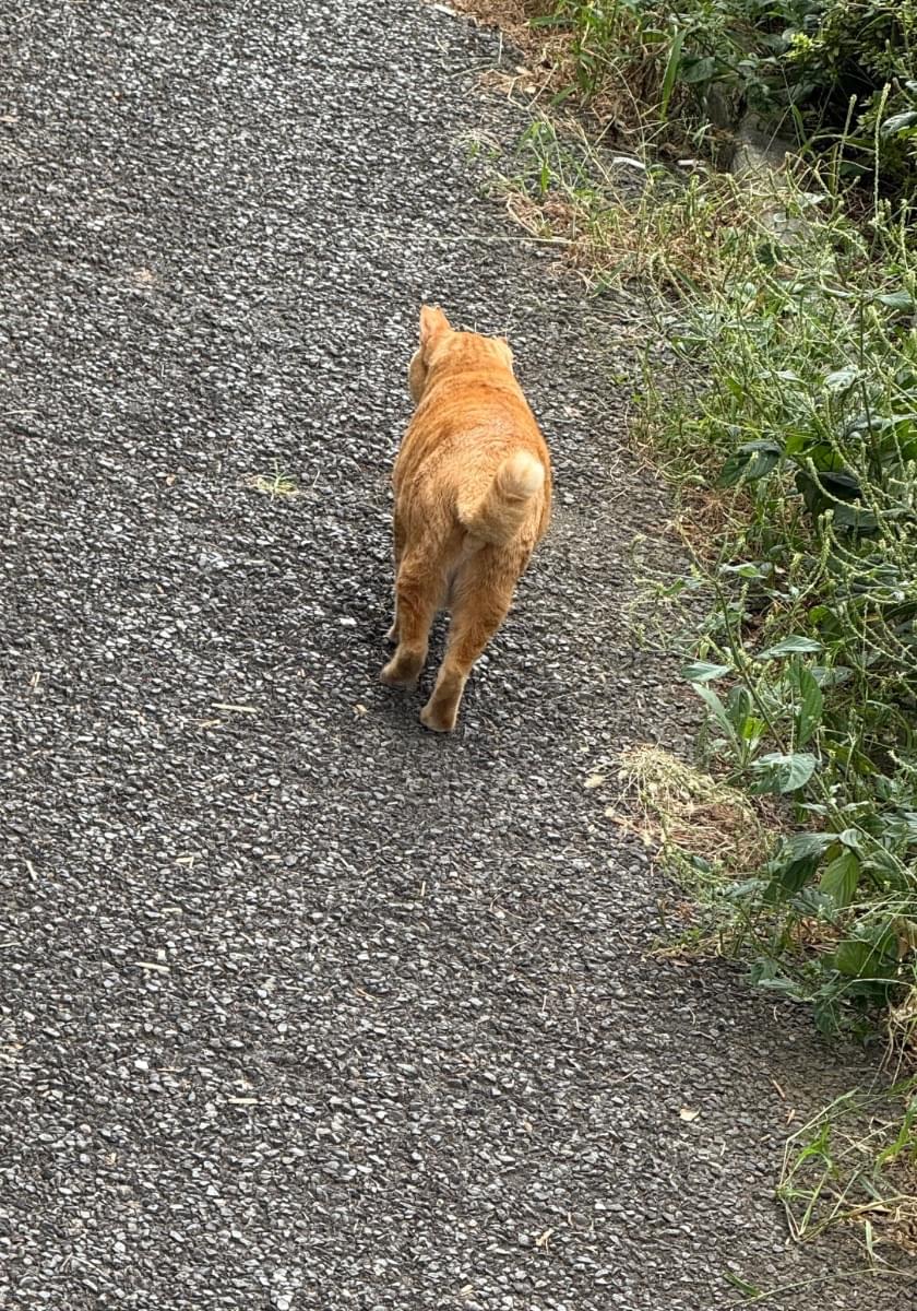 見かけない子だったので、ねこちゃん、と声かけたら立ち止まってニャーと返事あり。