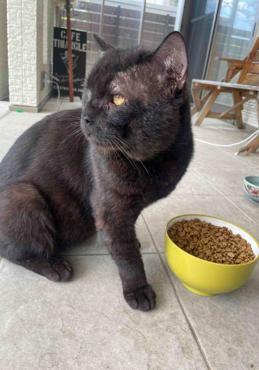 2月に見たときは首輪は外れており、そこから半年以上現在に渡りご飯を食べに来ている。