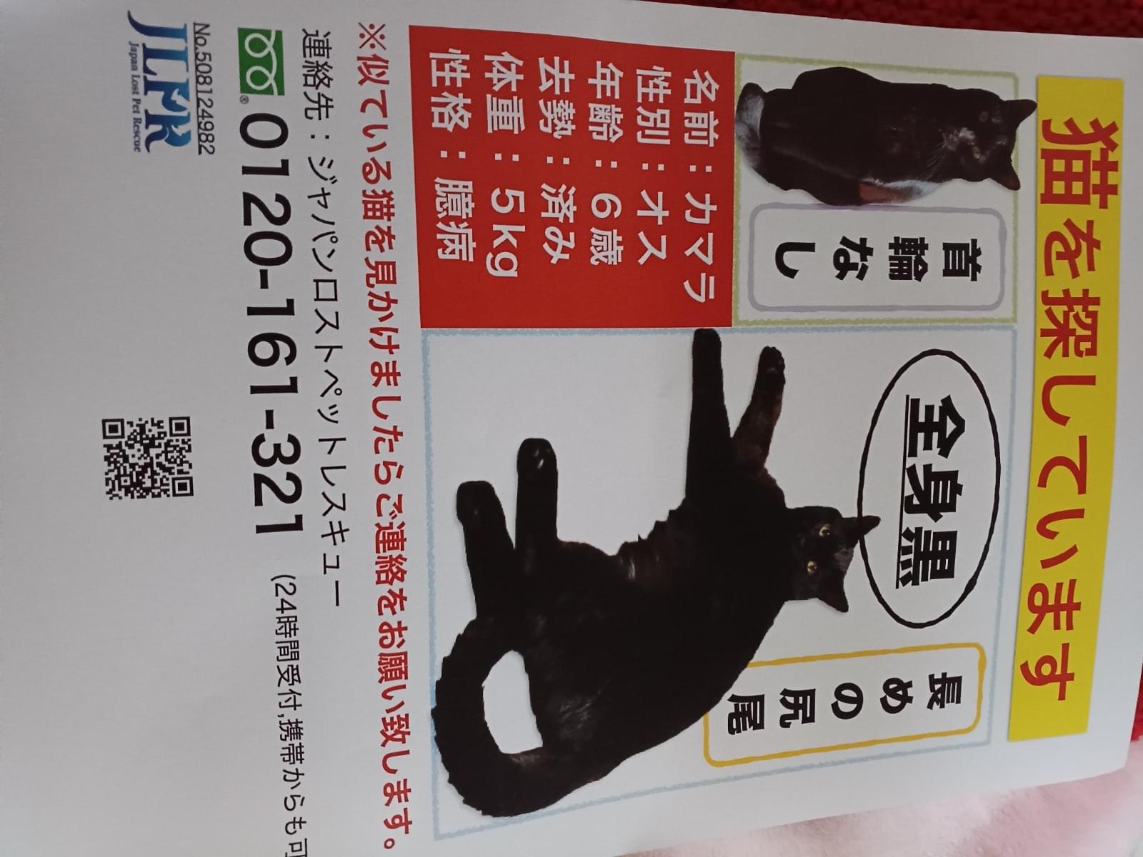 ホーム迷子猫神奈川県黒猫を探してます黒猫を探してます管理編集するポスター掲載終了最終更新日時:2025/10/02 00:03写真情報用件迷子名前カマラ性別オス年齢6才場所神奈川県 厚木市毛利台郵便局付近発生日時2025年8月11日(月)飼い主やまだ説明・しっぽ長い ・耳カットしてない(去勢済み) ・真っ黒ですが、お腹にパラパラと白い毛あり ・人慣れしてない連絡先URL未設定掲示板情報交換のための掲示板です。ユーザーからの情報提供、オーナーからの連絡などにご利用下さいませ。コメントを書き込むご連絡ありがとうございましたkuu(時計屋さん)返信1件2025/10/01 23:42ページの重複について管理人返信0件2025/10/01 21:17