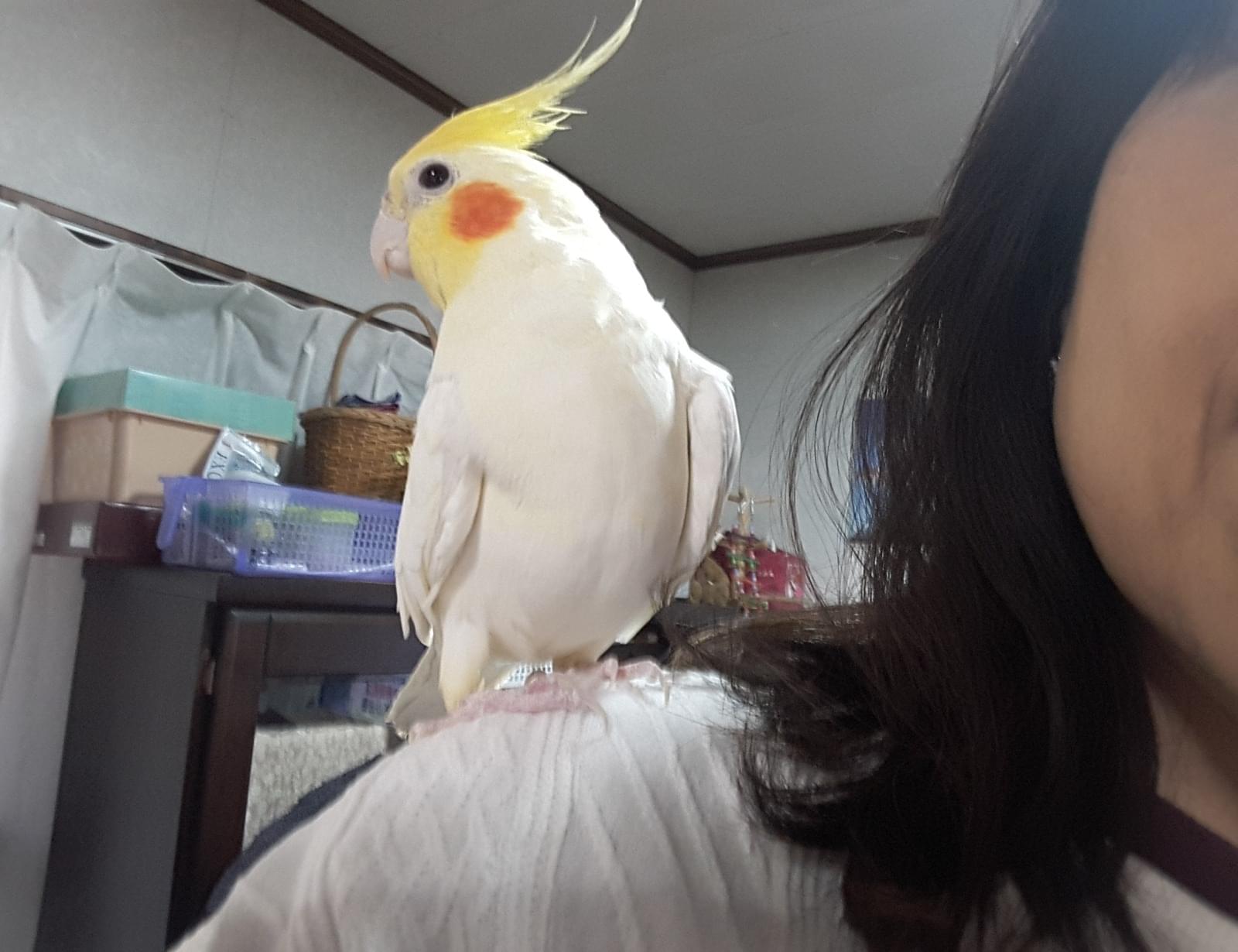 肩に乗るのが好きでとても懐いてます。