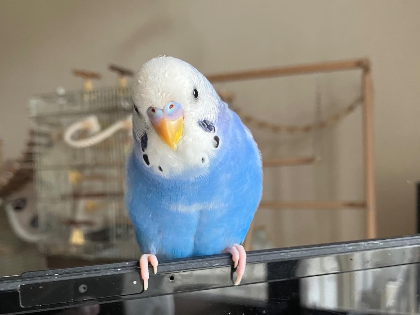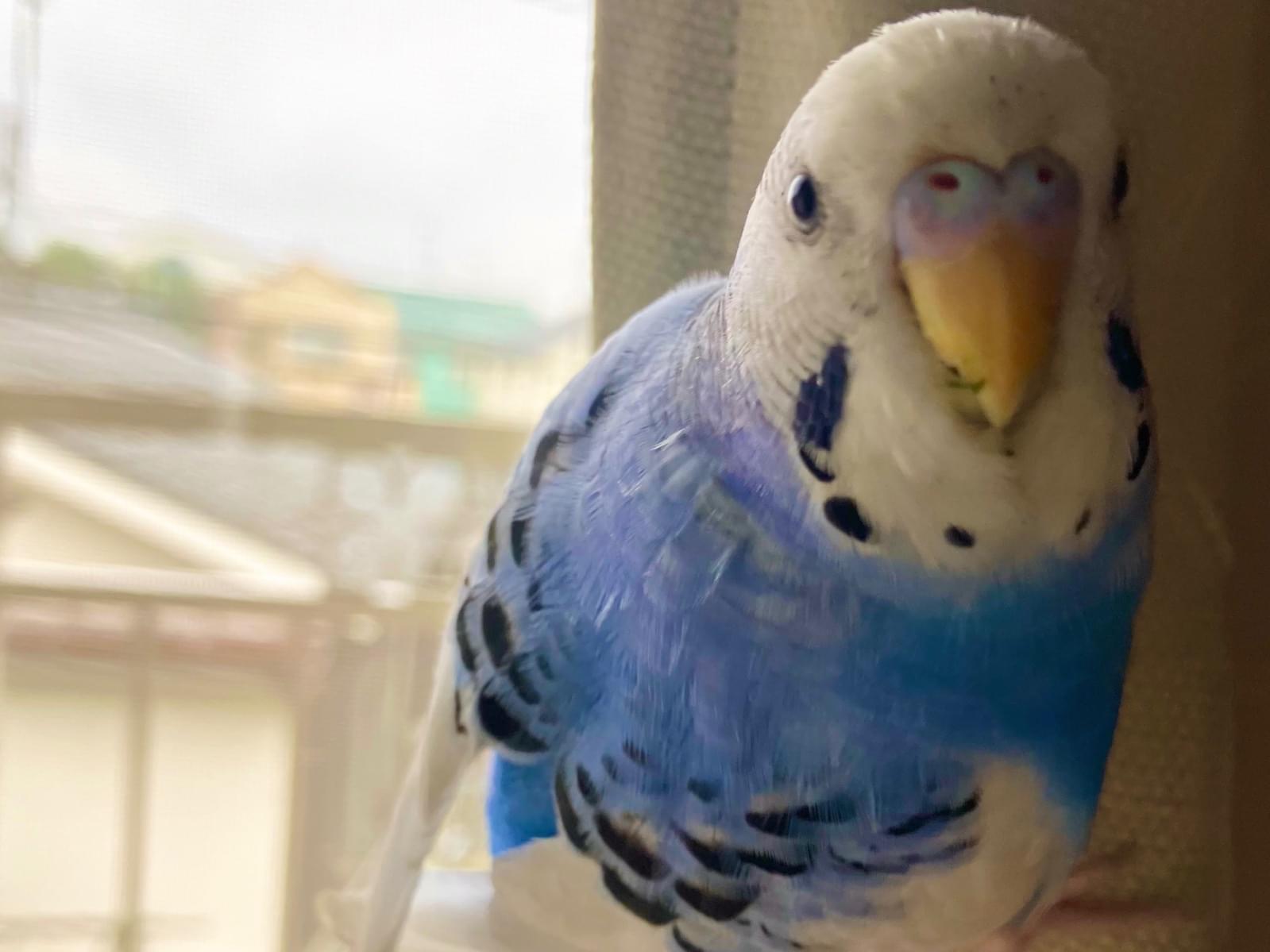 綺麗な白とブルーです。手乗りではないですが、肩に乗ります。体長約20cm。頭と尾は白いです。