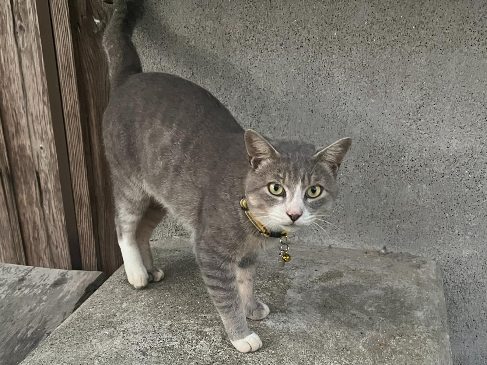 とても人慣れしているグレイの猫を目撃/餌をあげ始めています。保護したいのでオーナーを探しています