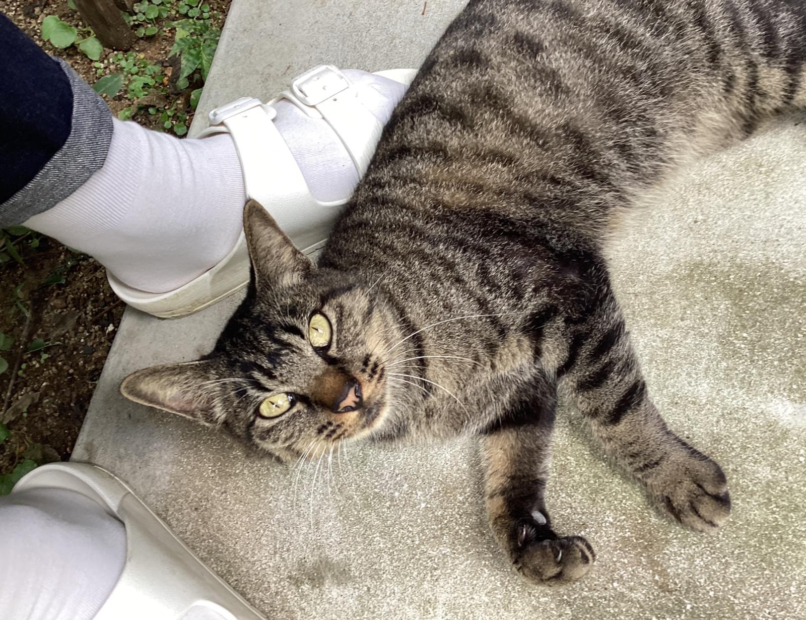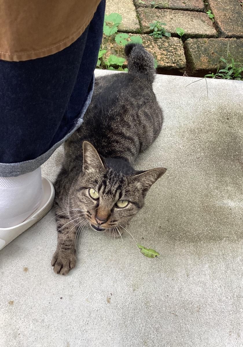 首輪などなく、ガリガリの状態だった為、餌を与えたら、人懐っこい子でした。