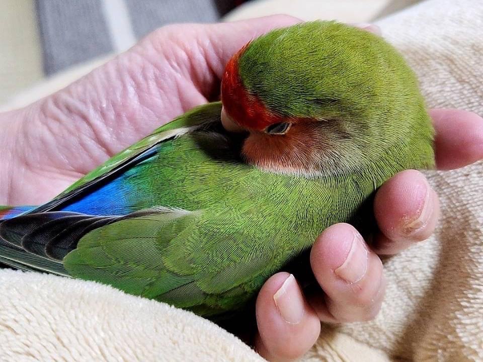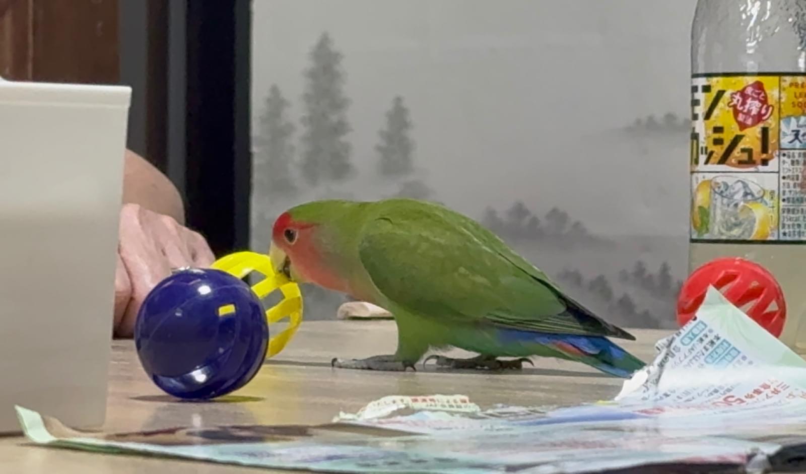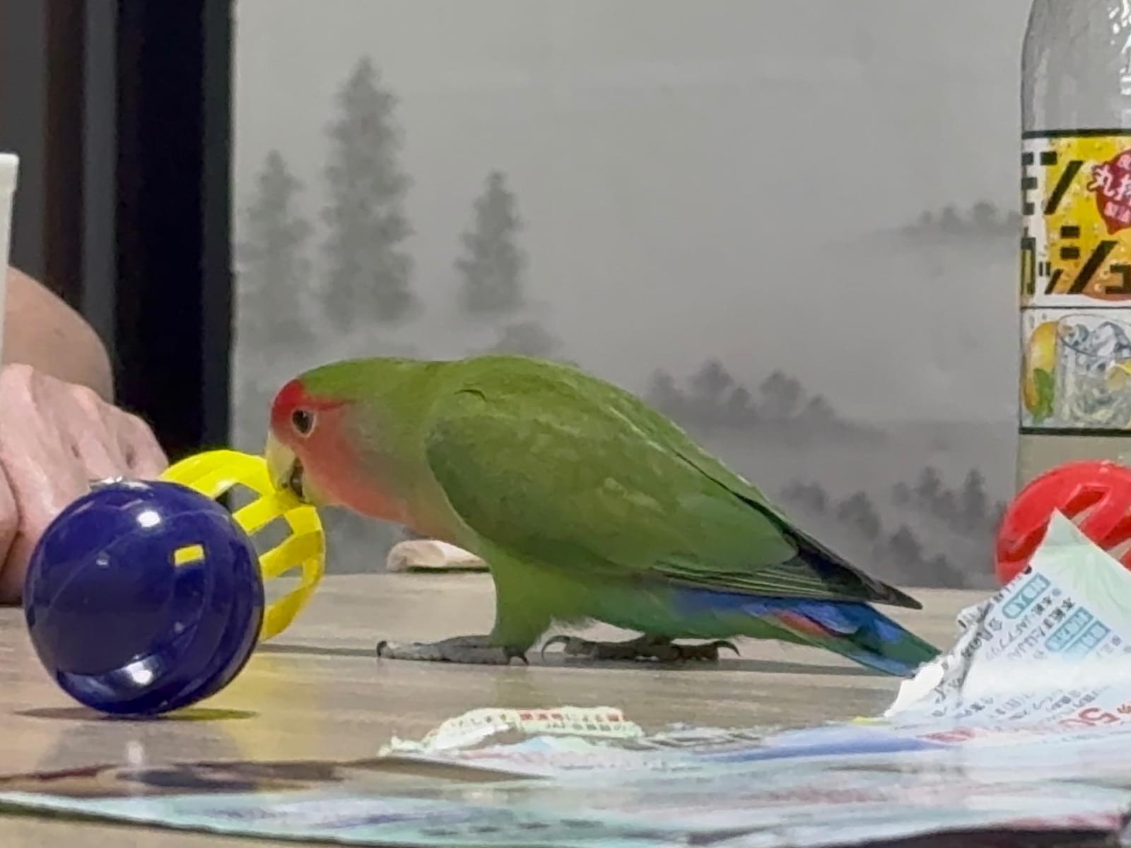 小桜インコ 餌見せると回るのと頷きます!