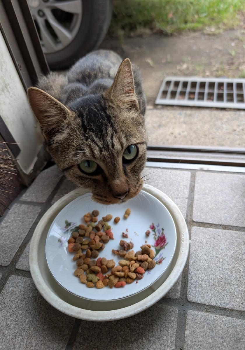 猫のご飯を用意すると、毎日来るようになり、今は抱っこも出来ます。まだ幼い感じがするのですが、