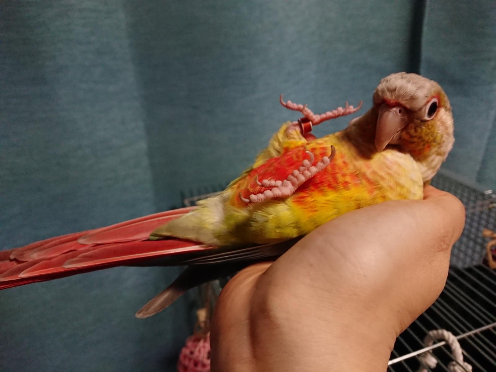 ウロコインコを探しています。色は背中はモスグリーンでお腹が赤と黄色、頭がベージュで尾羽は赤です。お喋りはしませんがそこそこ大きな声で鳴きます。手乗りです。