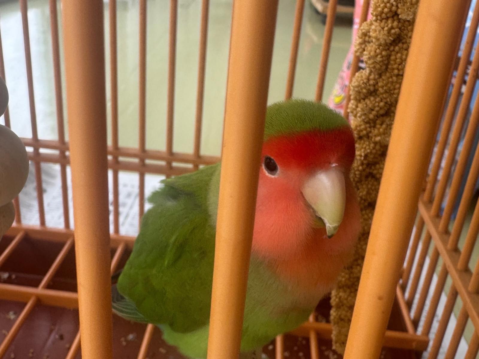 首輪等はしてませんでしたが、綺麗な羽毛とその人懐こさから迷い鳥だと思い保護しました。