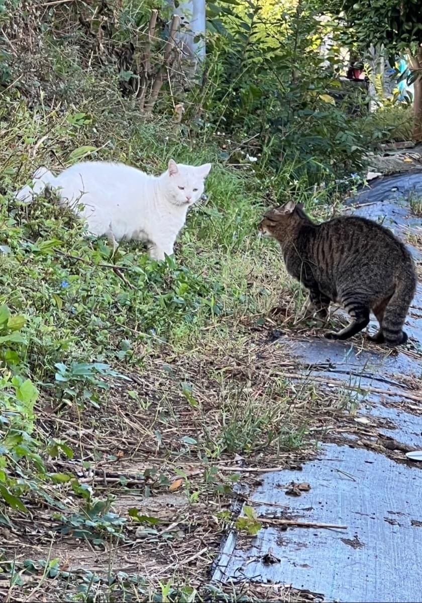 近所に野良猫が2匹住み着いていますが、そのうちの1匹に威嚇されていたので最近このエリアに来たと思われます。