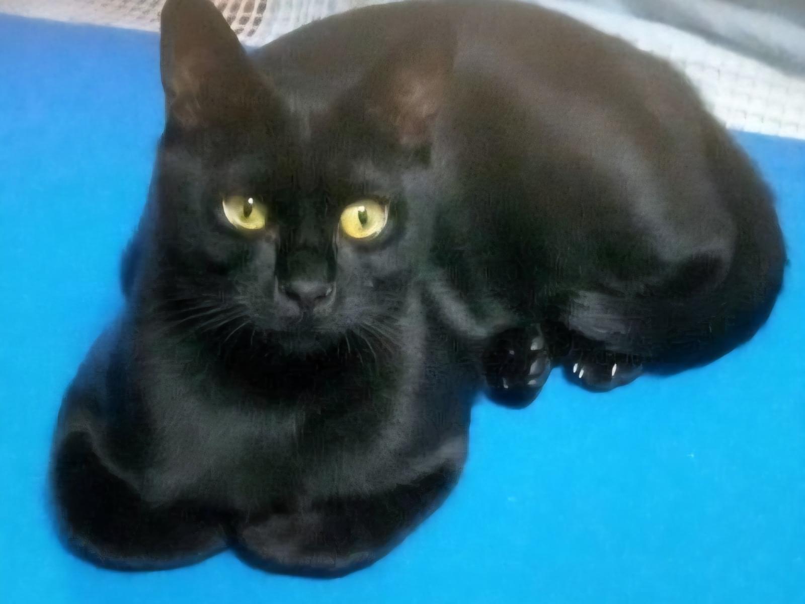 しっぽは、まっすぐ長いです。大人しい黒猫です。