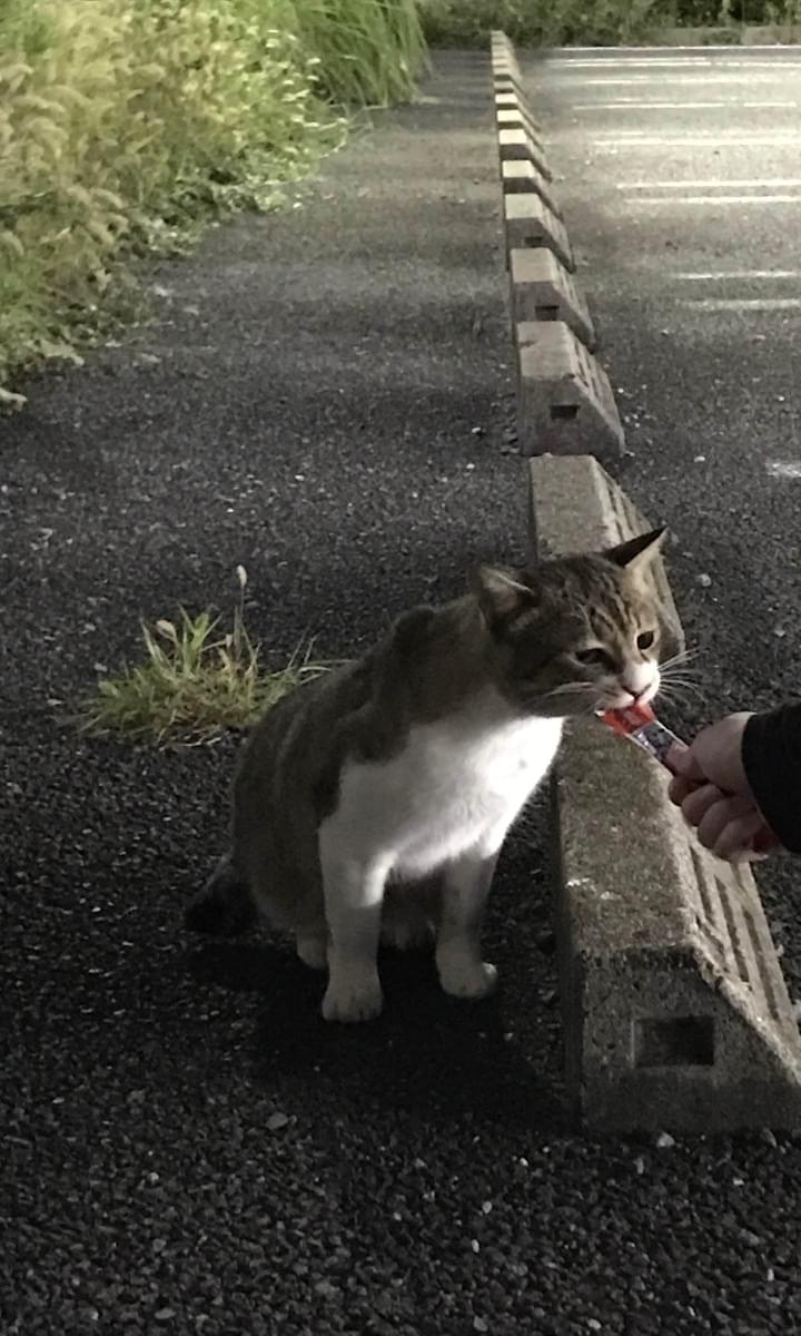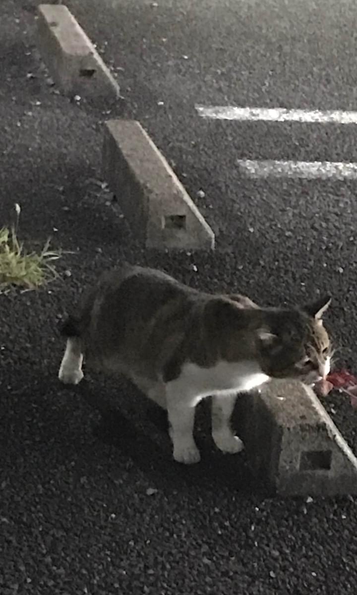 車や人に全く警戒心無く、毛並みの良さ、歯の綺麗さなどから家を飛び出して来たばかりの猫だと思われます。