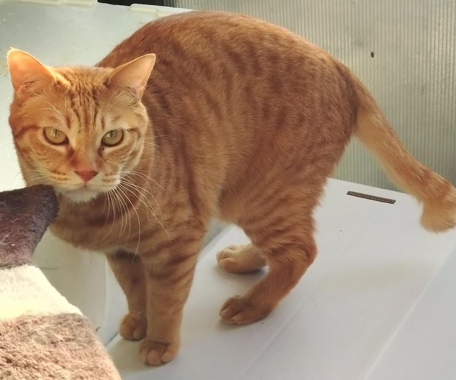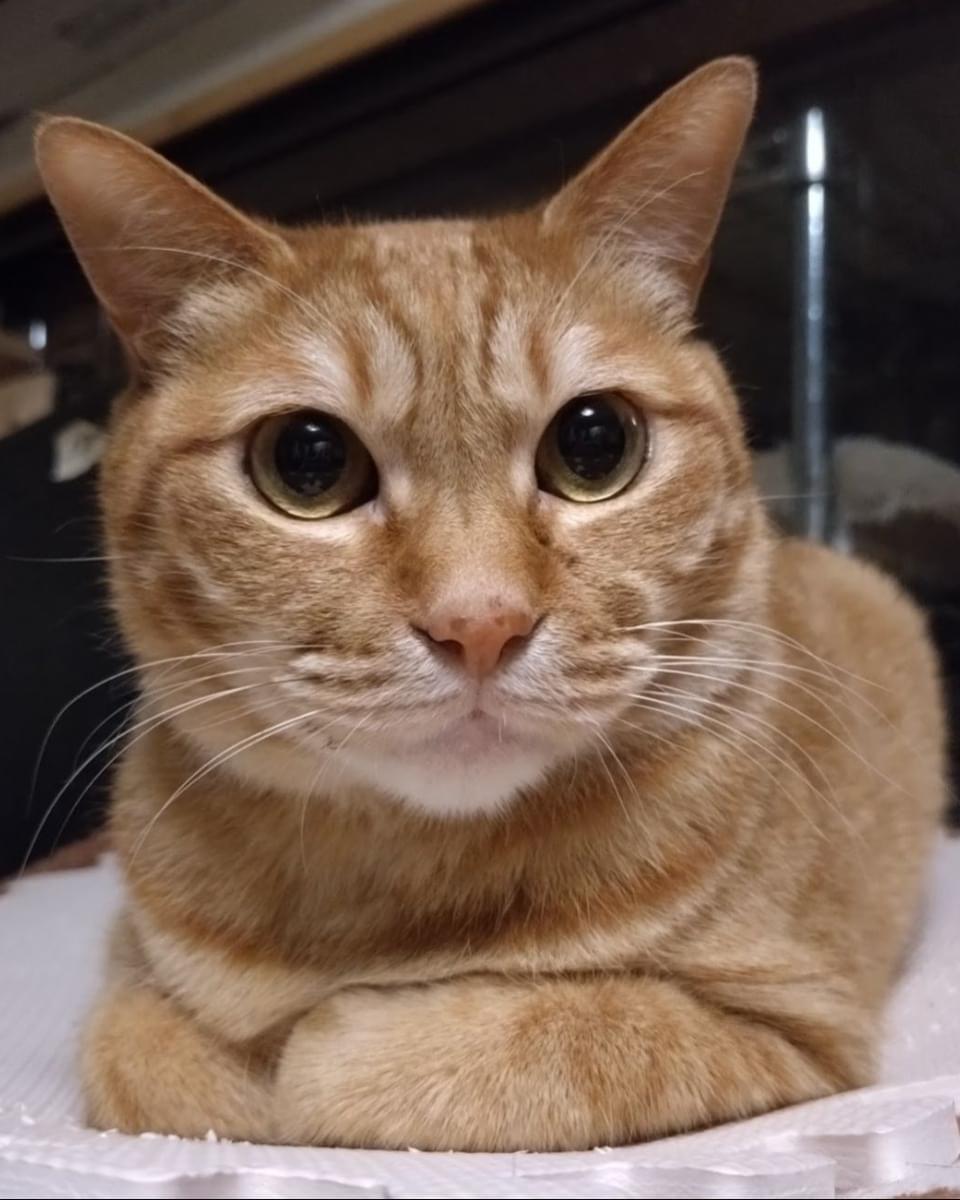 茶トラでかなりのビビりで部屋にエアコンの取り付け業者が入ってきただけでパニくるレベルです。