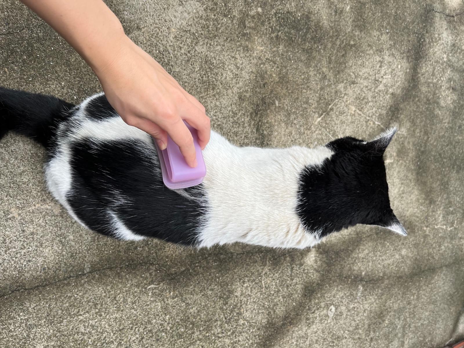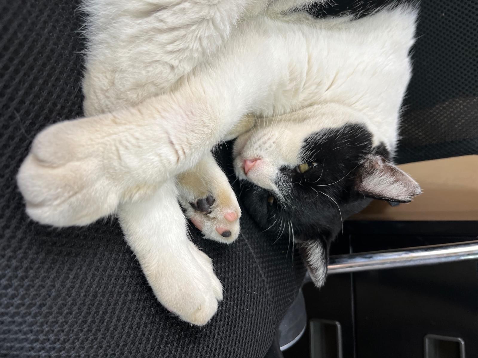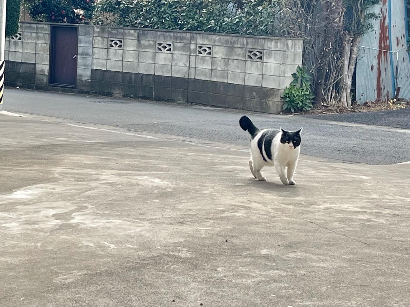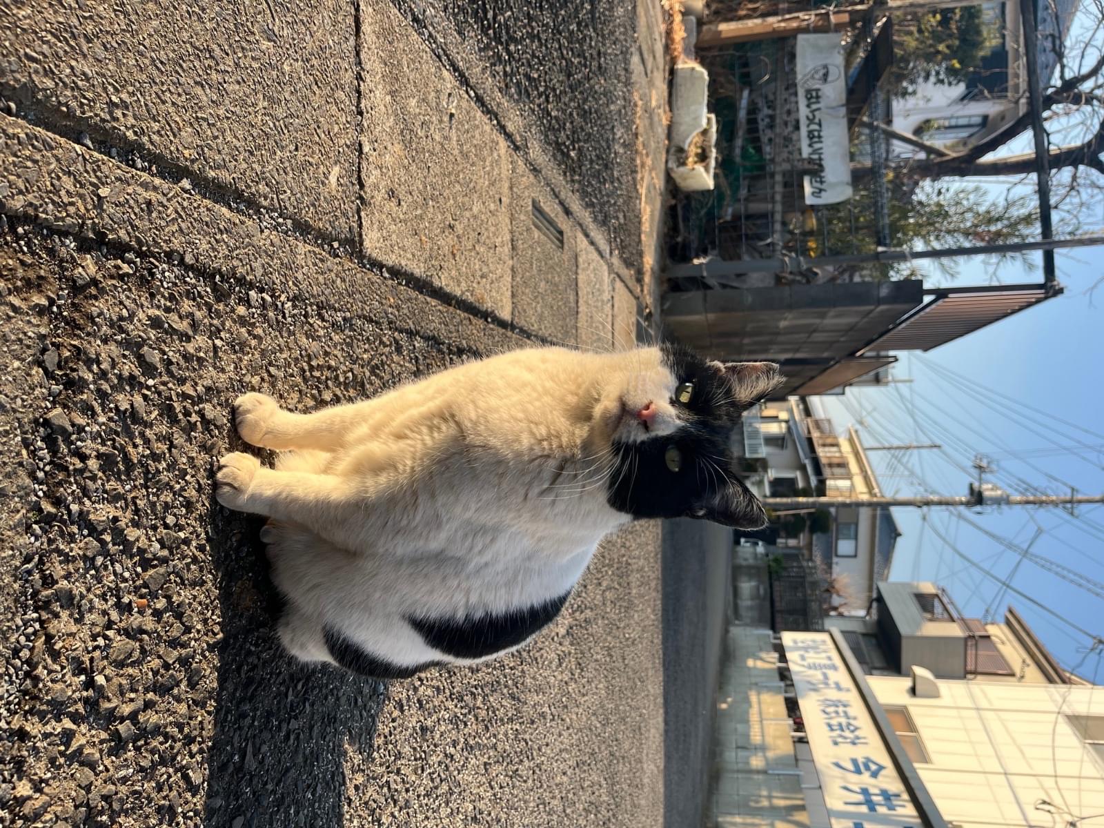 白黒猫、鍵しっぽに右耳桜カット。人懐っこい、「ばー!」と呼ぶと、いつも「にゃー」と言って近づいてきてくれました。左足を負傷中、療養中にエリザベスカラーを付けたまま脱走。とても心配しています。