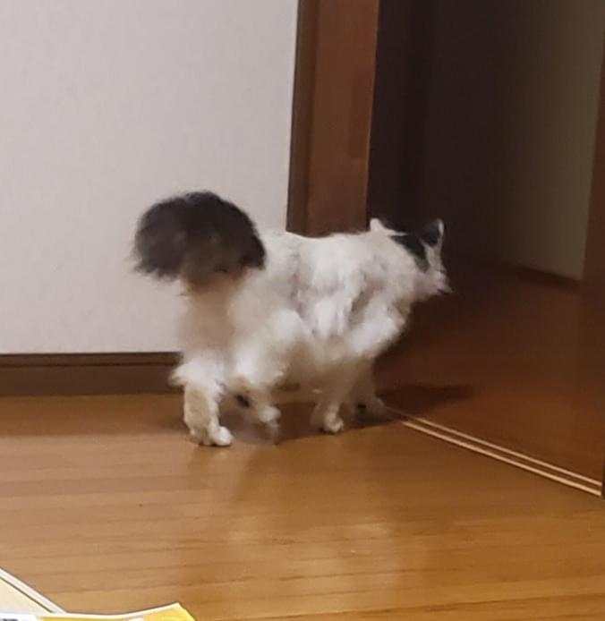 尻尾は黒色でボサボサ。左耳さくらカット。