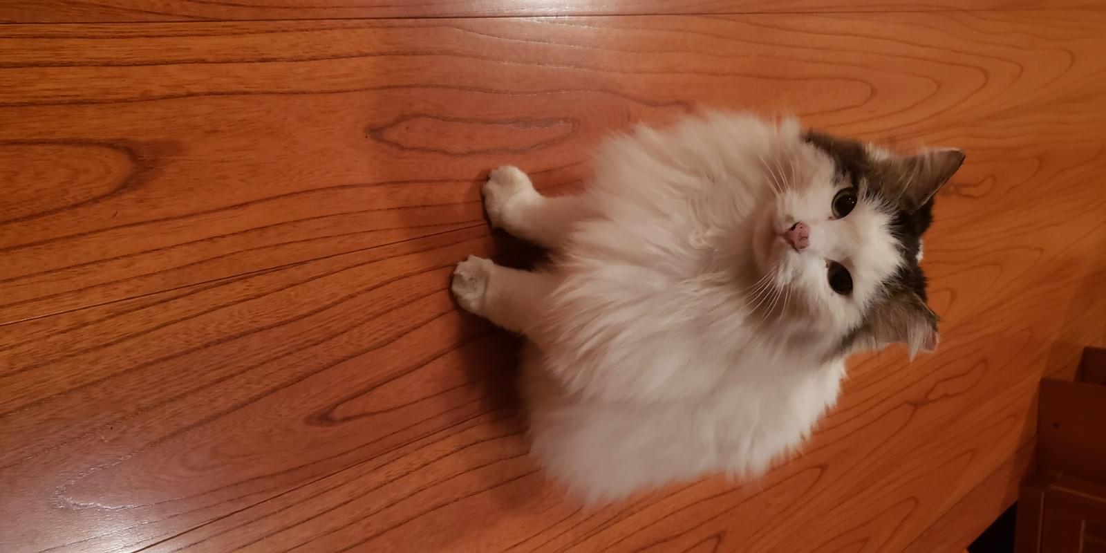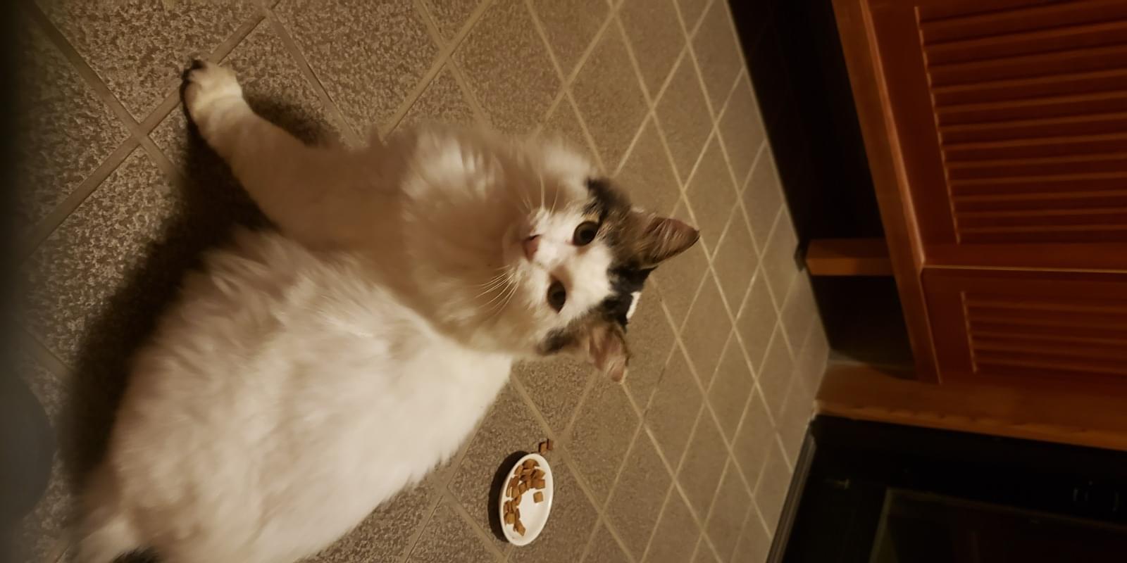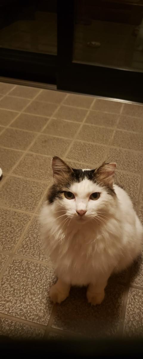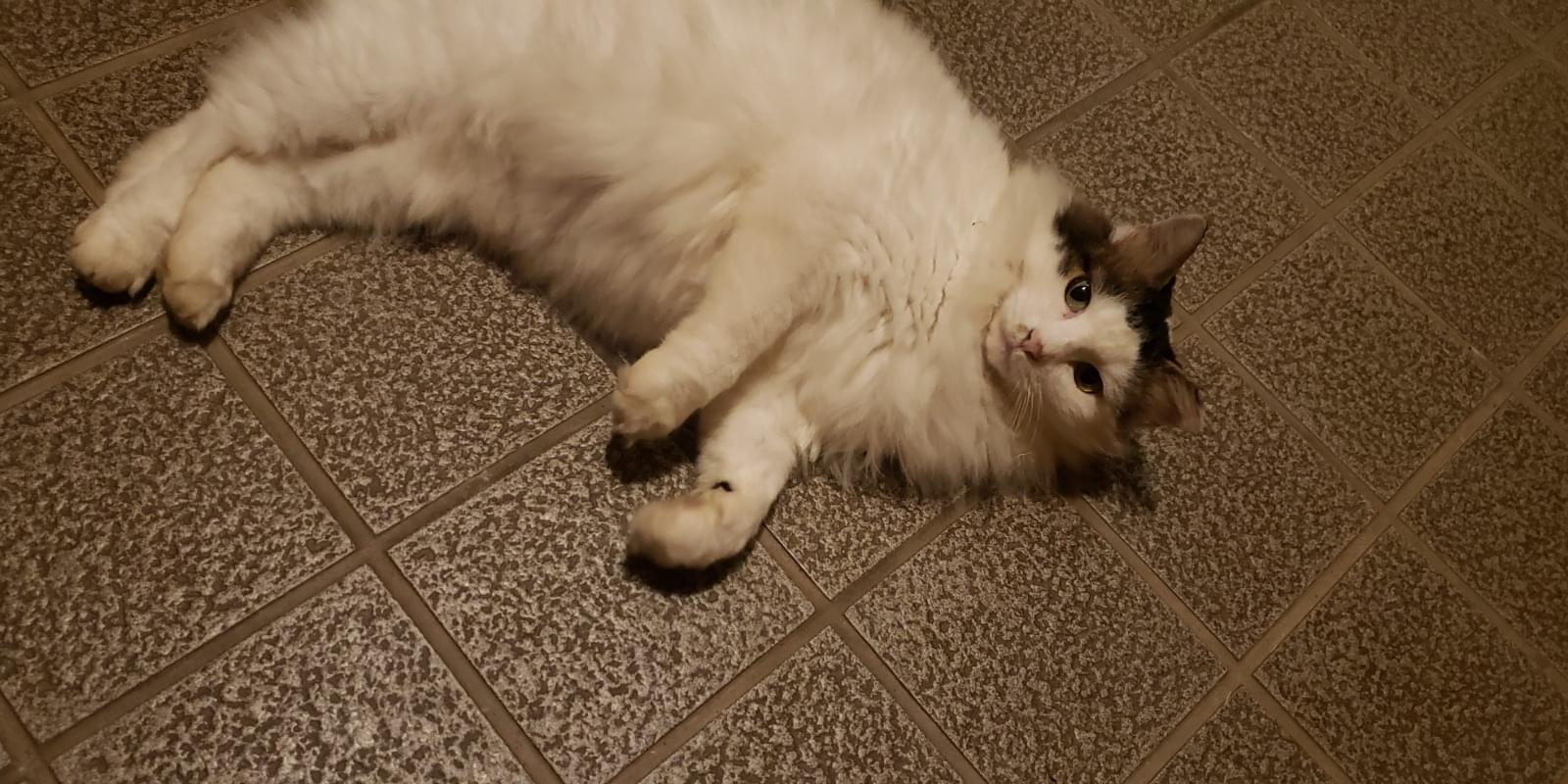 白地に黒ブチの長毛猫さがしています