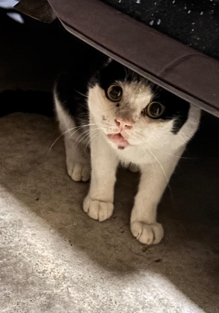 とても人懐っこく、人をみると擦り寄っていって撫でられています。かなりの甘えん坊なので飼われていた可能性が高いと思われます。