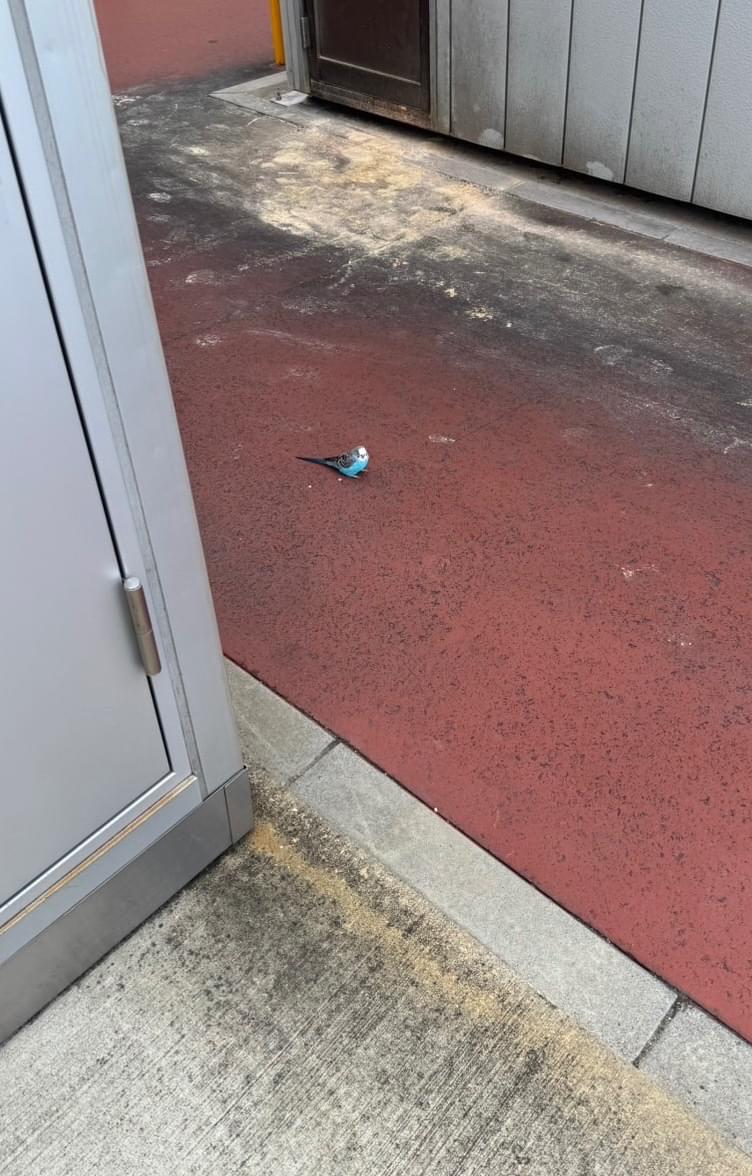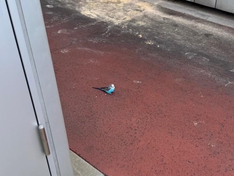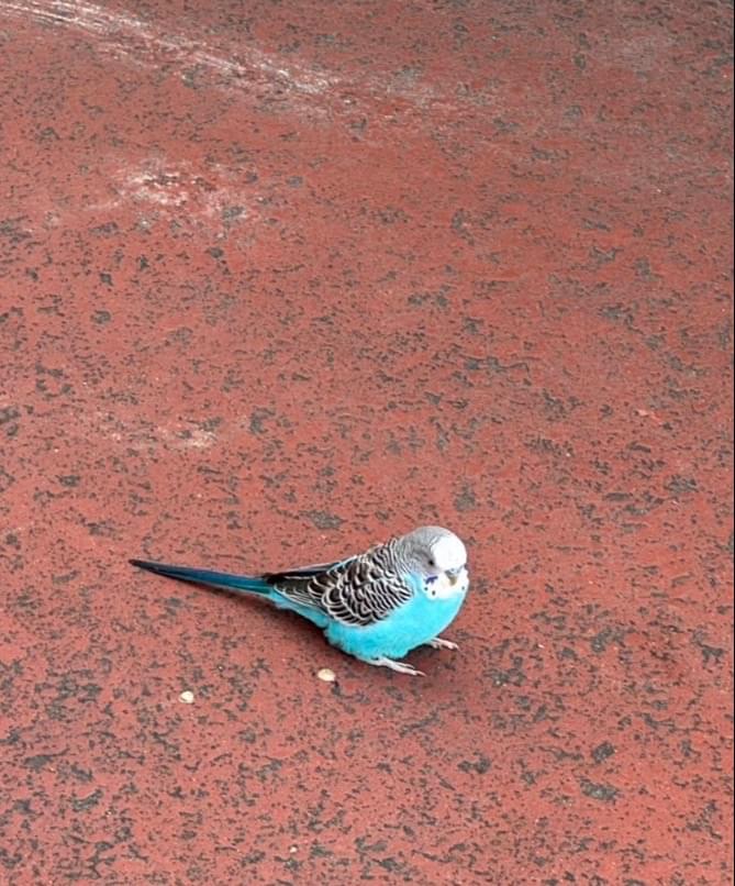 スーパービバホーム一宮店、宝くじ売り場の裏手で、水色のセキセイインコがいると、知人から写真が送られてきました。