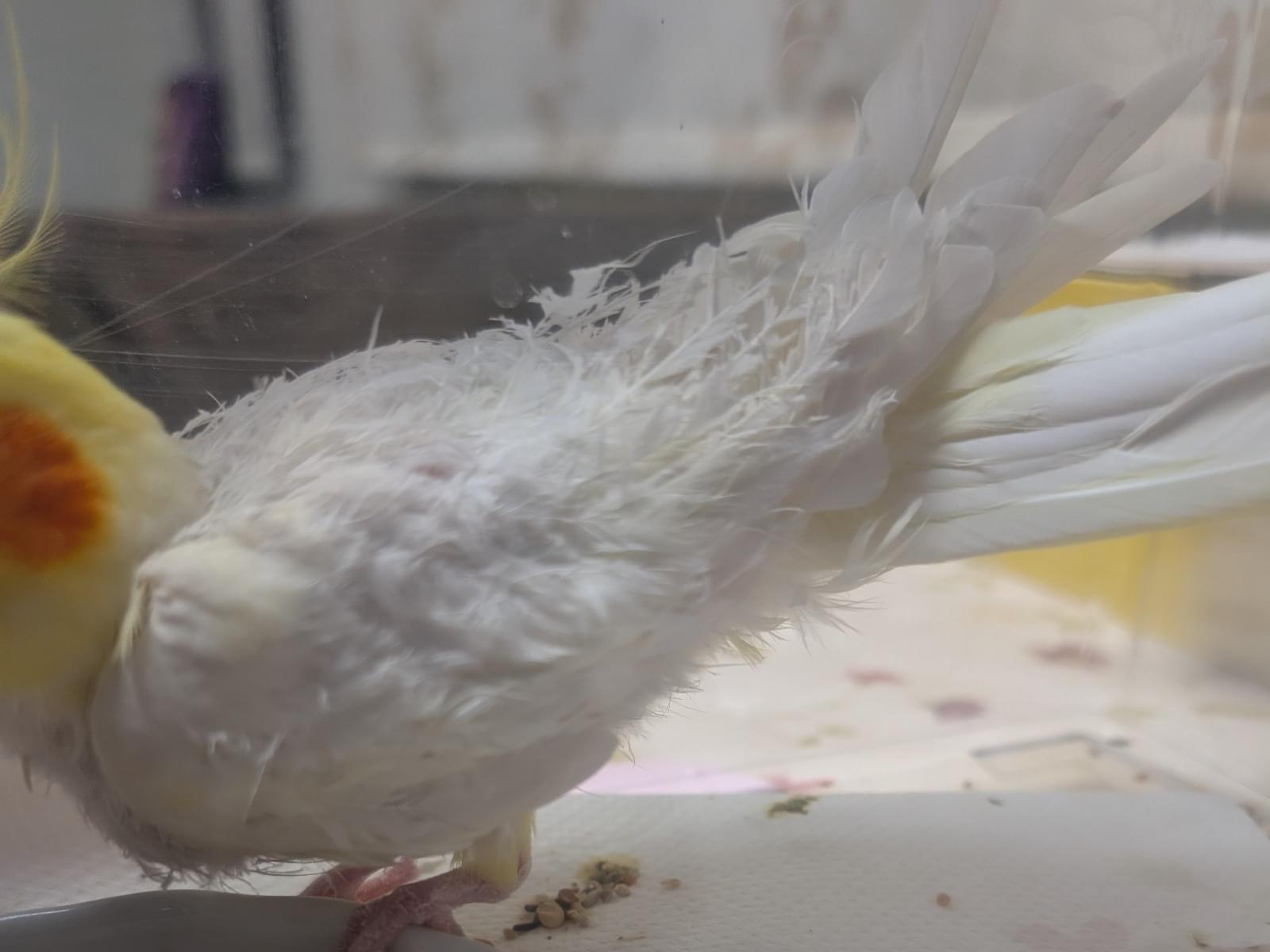 毛引きのため全身の羽に抜きが見られますが、いつからなのか、何故毛引きに至るのかまでは分かりません。