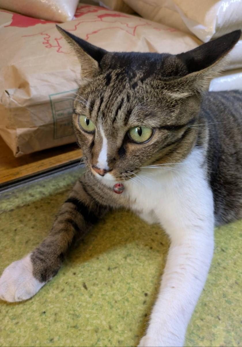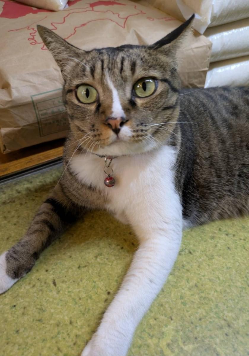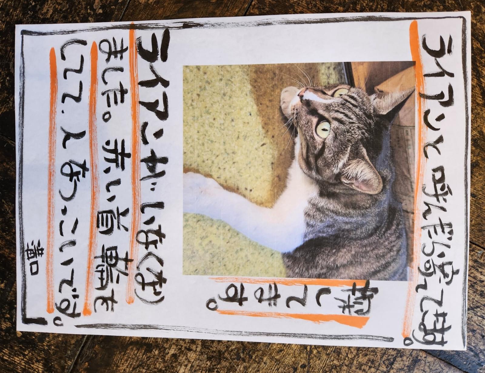 赤い首輪したきで、左手が白く鼻の辺りも白くなってます。