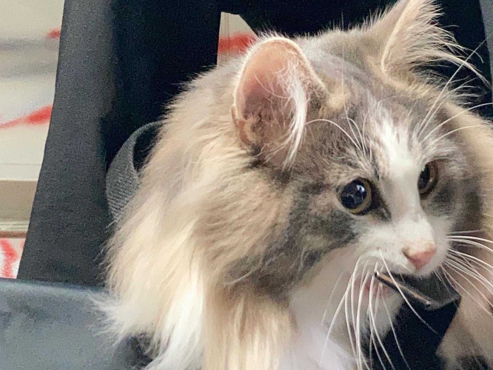 長毛種で白とグレーの毛色をした猫をさがしています。