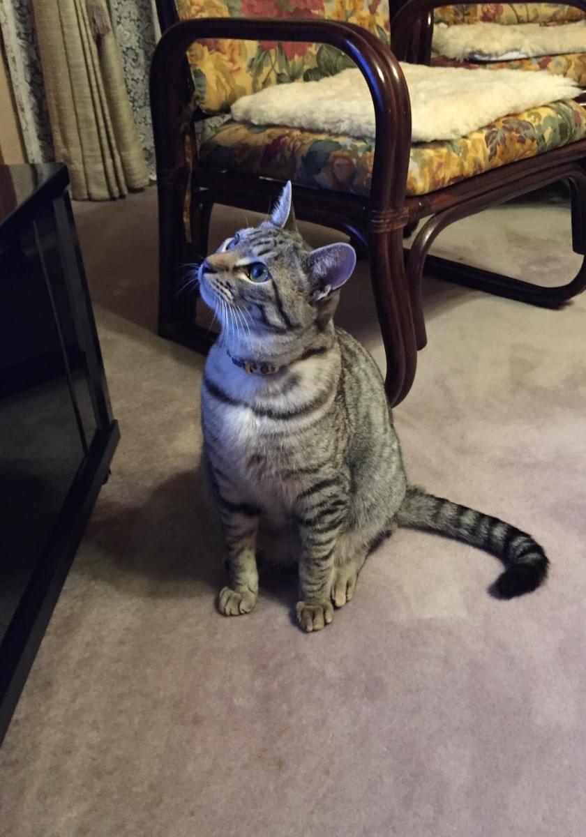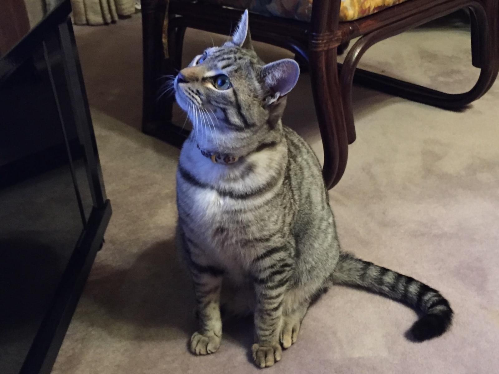 鈴付きの首輪をしているので、歩いたり走ったりすると音が鳴ってると思います。