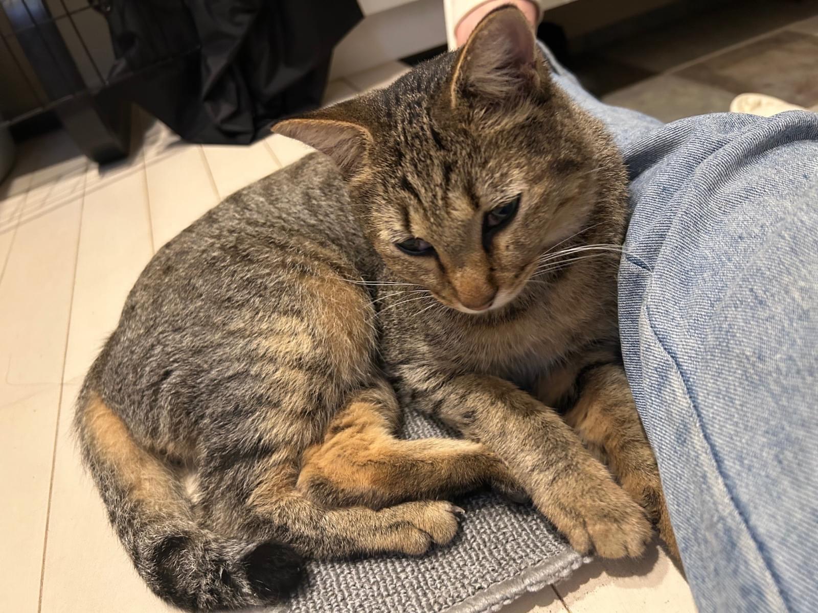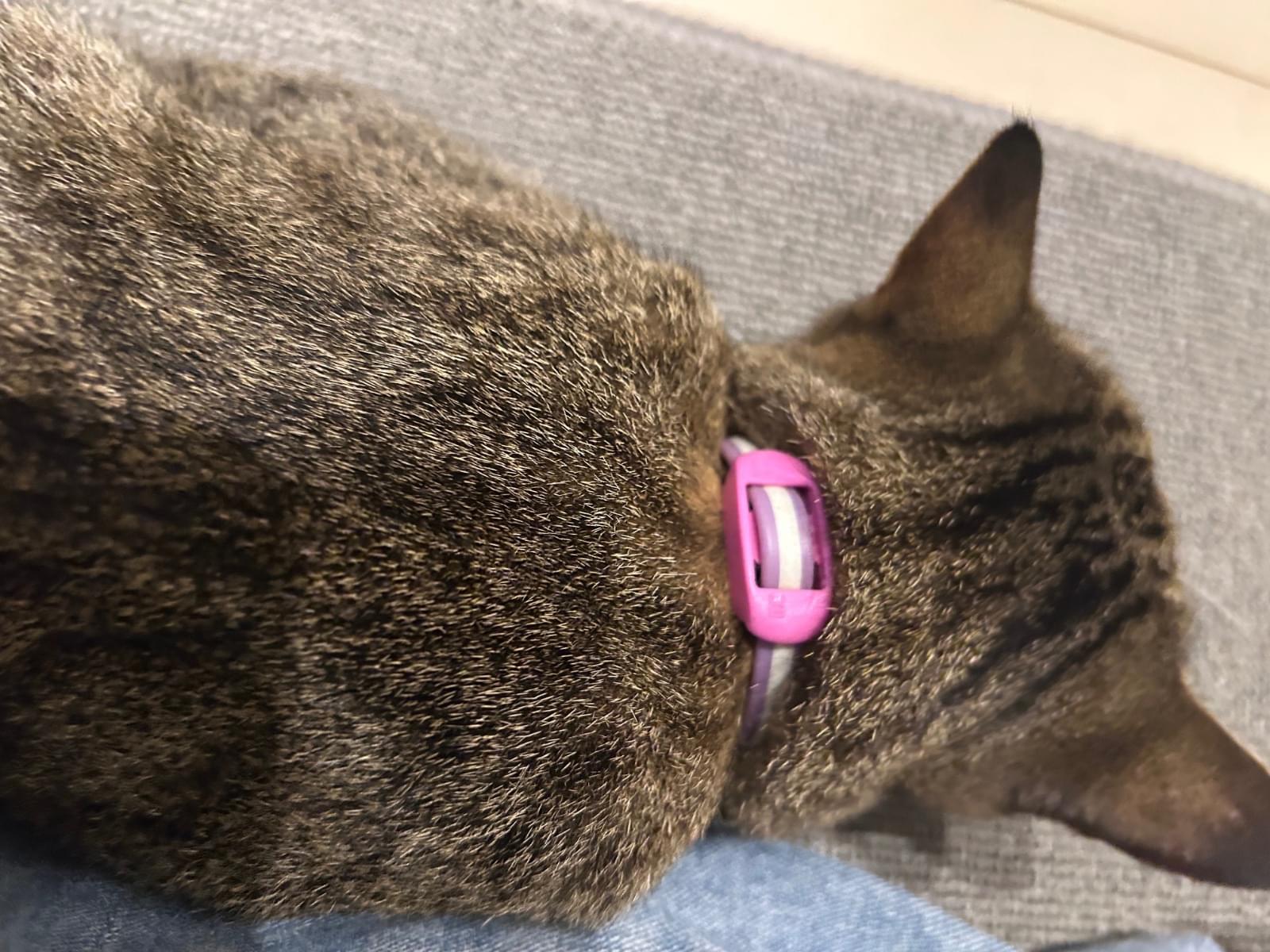 12日昼に家の敷地に来ました。アース製のダニ取り首輪(紫色)をしています。割と新しいです。耳の中もきれいなので迷子になったばかりかな?と思いますが.人懐こくすり寄ってきてなかなか離れないので家で保護しています。