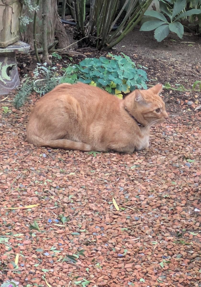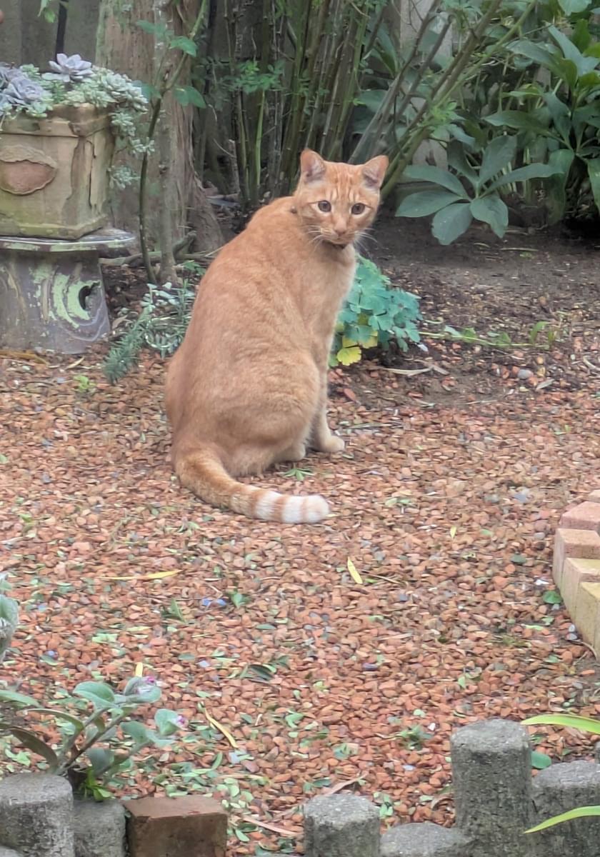2週間程前から、時々庭に首輪(チェック柄で鈴付き)をしている茶トラの猫が遊びに来てます。探している方がいましたら連絡ください。
