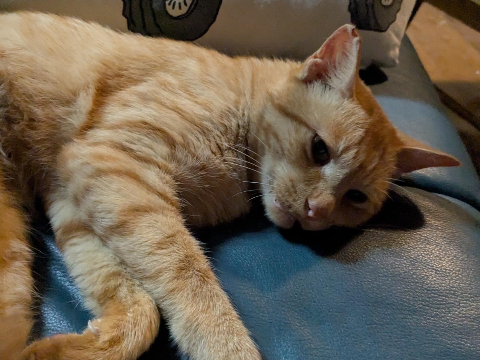 トラ猫ですが背中はヒョウ柄みたいな感じです。