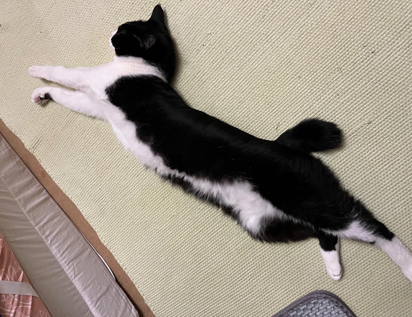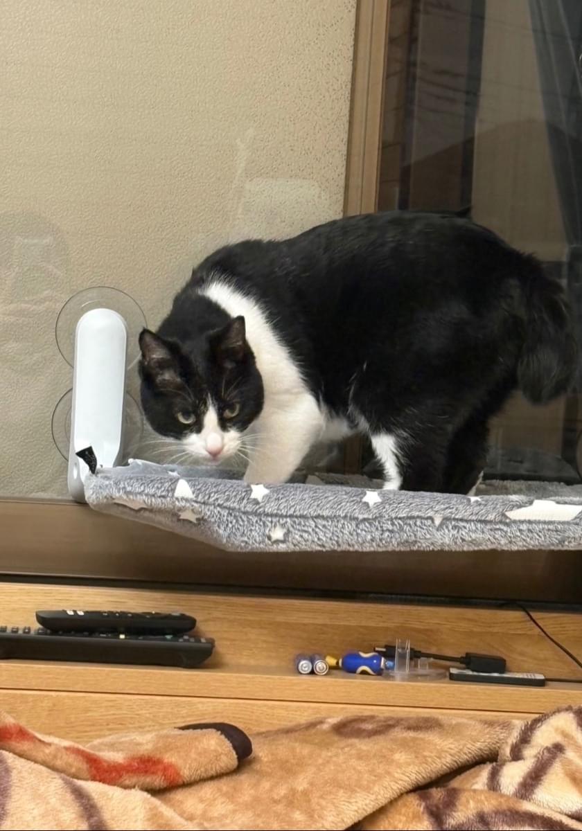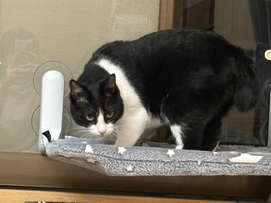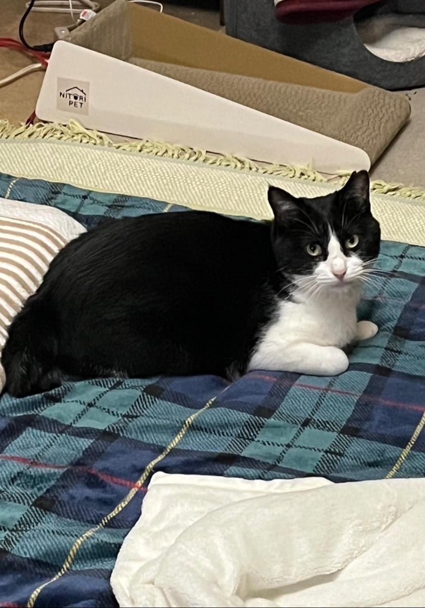 赤い首輪の白黒ハチワレ、尻尾がお団子のように短い女の子の猫を探しています。