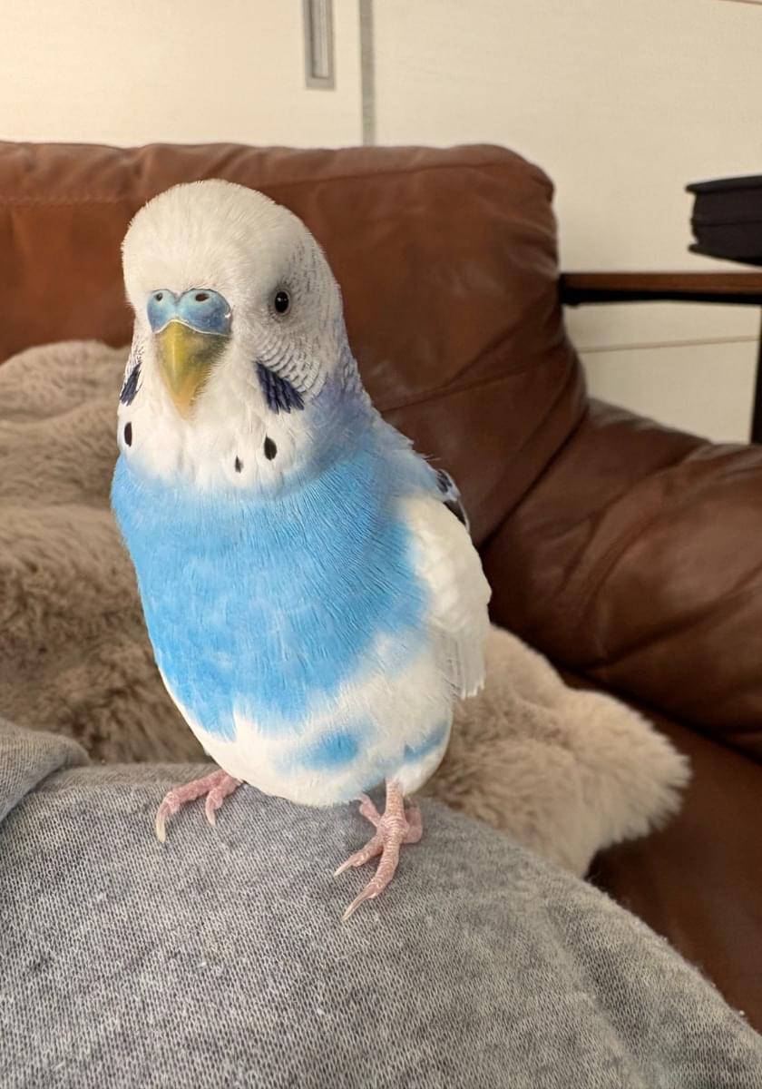 額に小さな傷が有る、なつっこい性格のセキセイインコです
