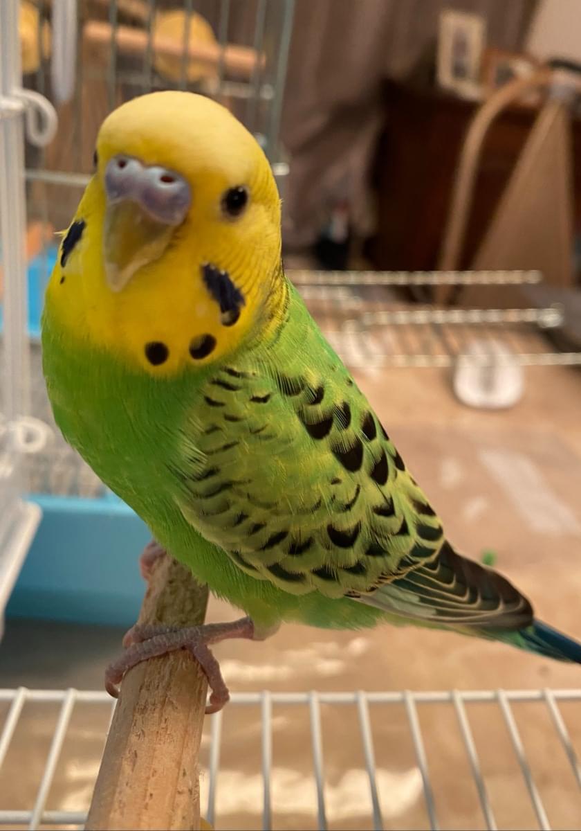 よくさえずる元気な子です。リビングを飛び回り、肩に乗ってきます。
