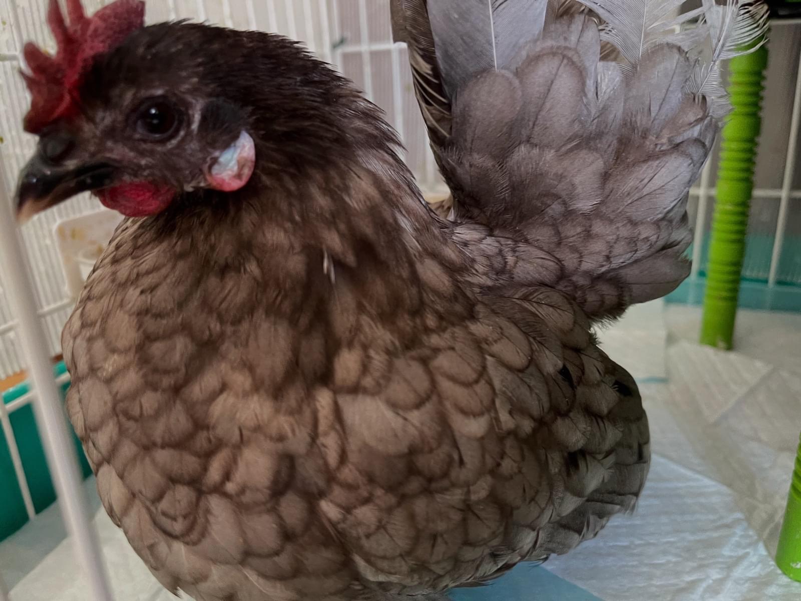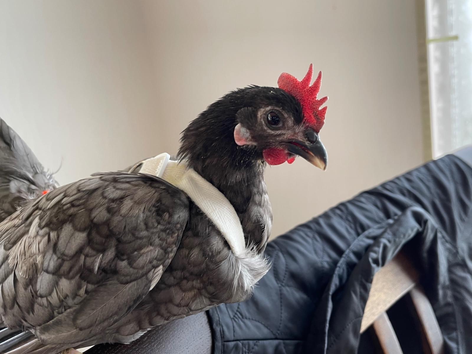 身体が小さく(380g平均的なチャボの半分)弱かった為犬達と一緒に室内で育てました。