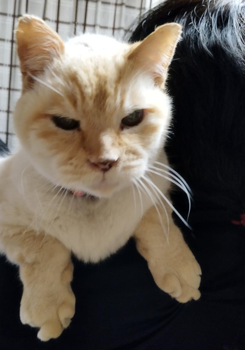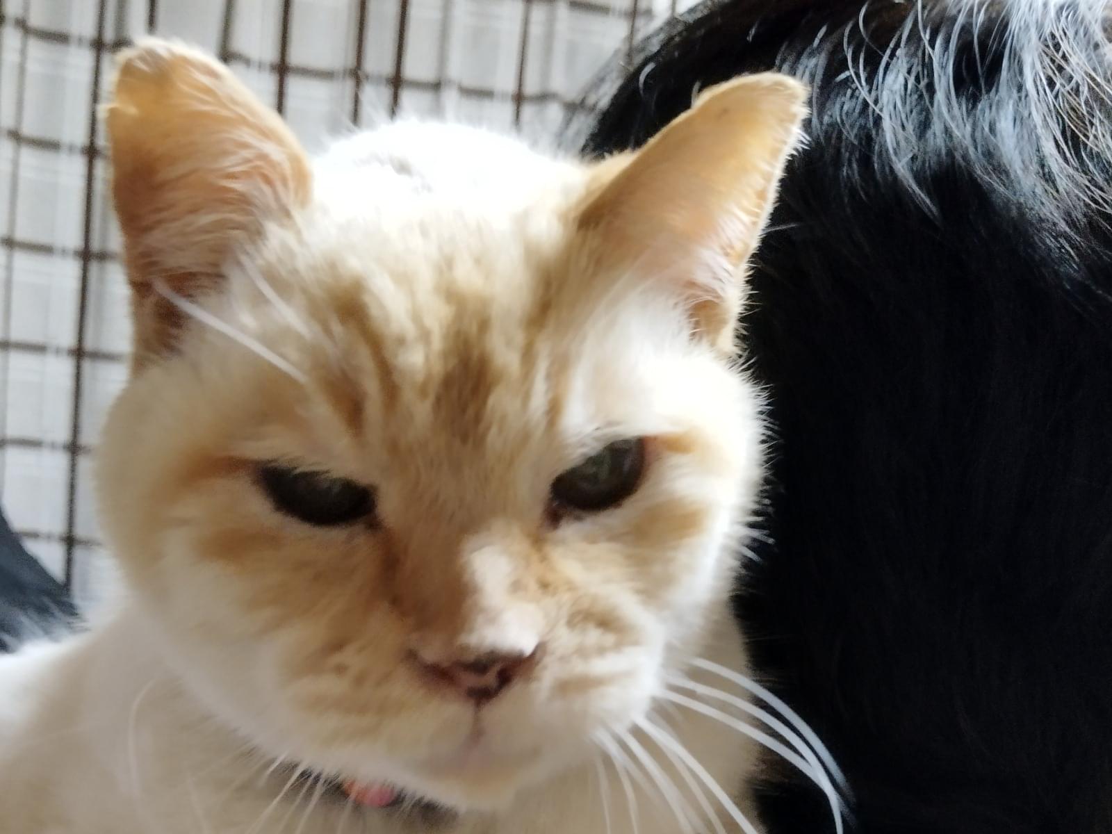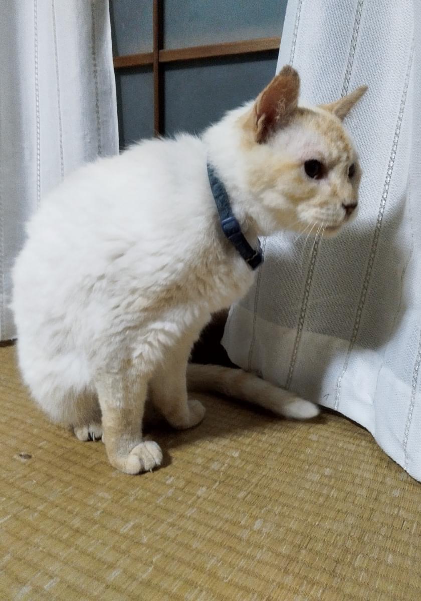 クリーム色 顔全面 耳 尻尾に茶虎の模様あり