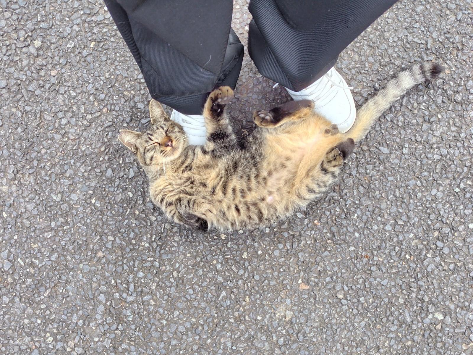 だいぶ人馴れがすごく、玄関開けると家の中に入ってこようとします。鳴き声は小さめ。
