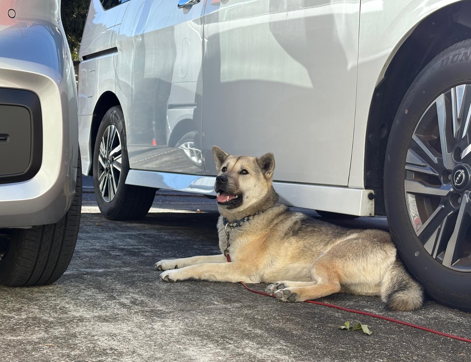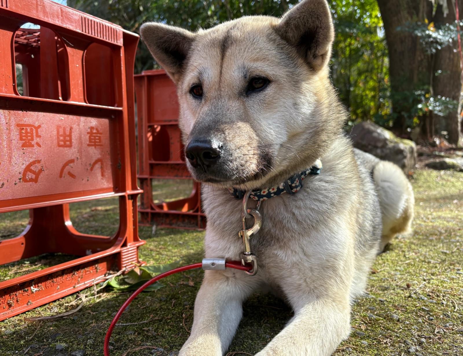 胡麻毛の紀州犬。柴犬くらいの大きさです。
