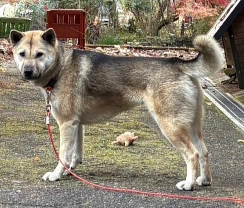 散歩中に首輪が抜けて、鹿を追って山の中に入っていってしまいました。