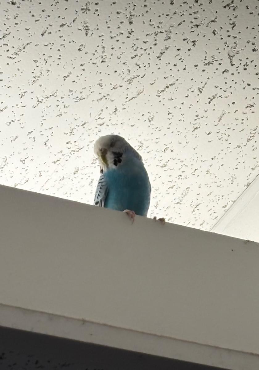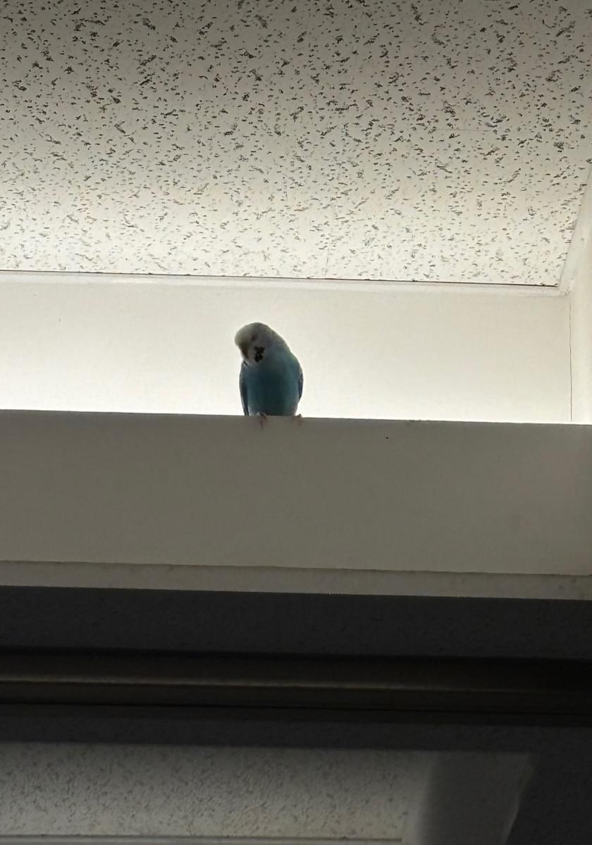 青色で、あまり人慣れはしていないかもしれません。(インコ飼いのお友達に朝 餌で呼んでもらいましたが逃げてしまいました)